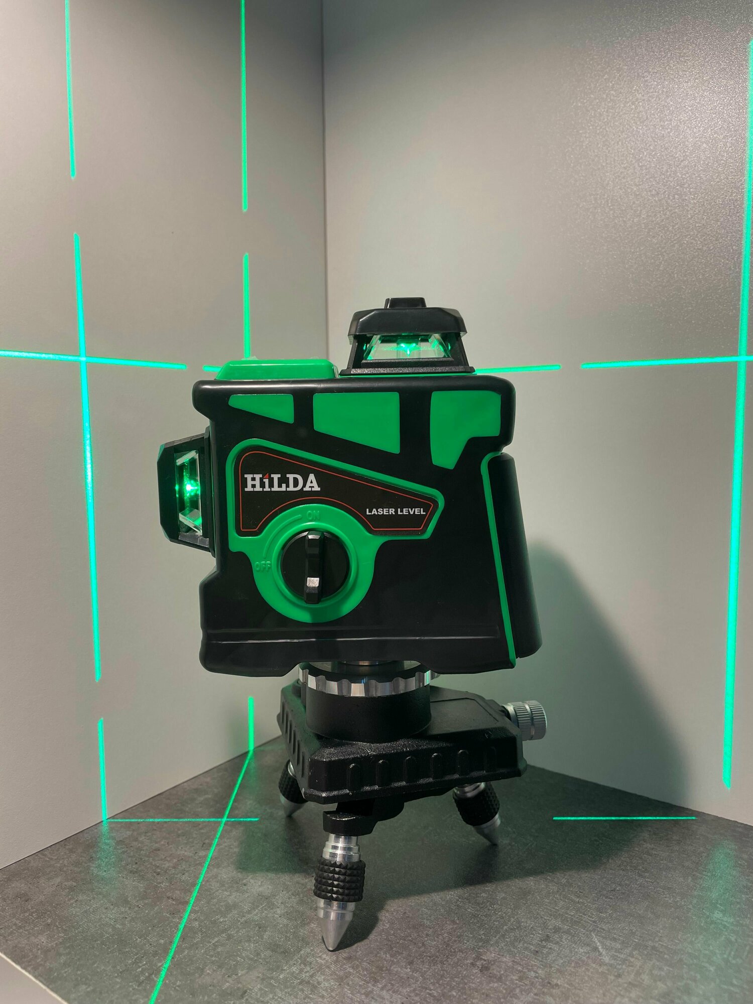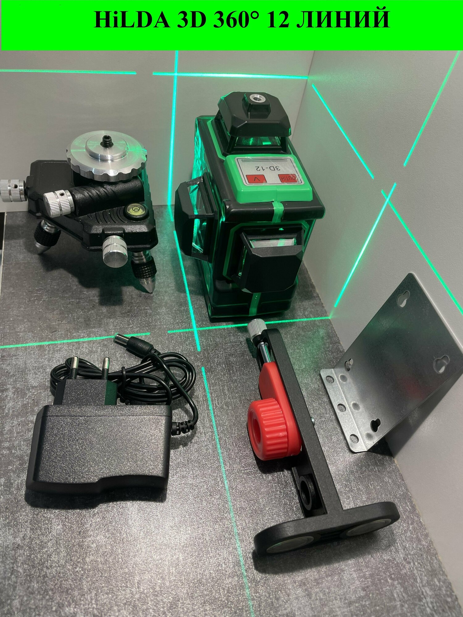 Лазерный уровень Hilda, 360°, 12 лучей, зелёный луч, автоматическое выравнивание интересное: