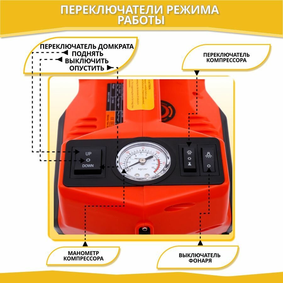 Купить Автокомплект 5 в 1 - электрический гидравлический домкрат, фонарь, гайковёрт, насос и знак аварийной остановки