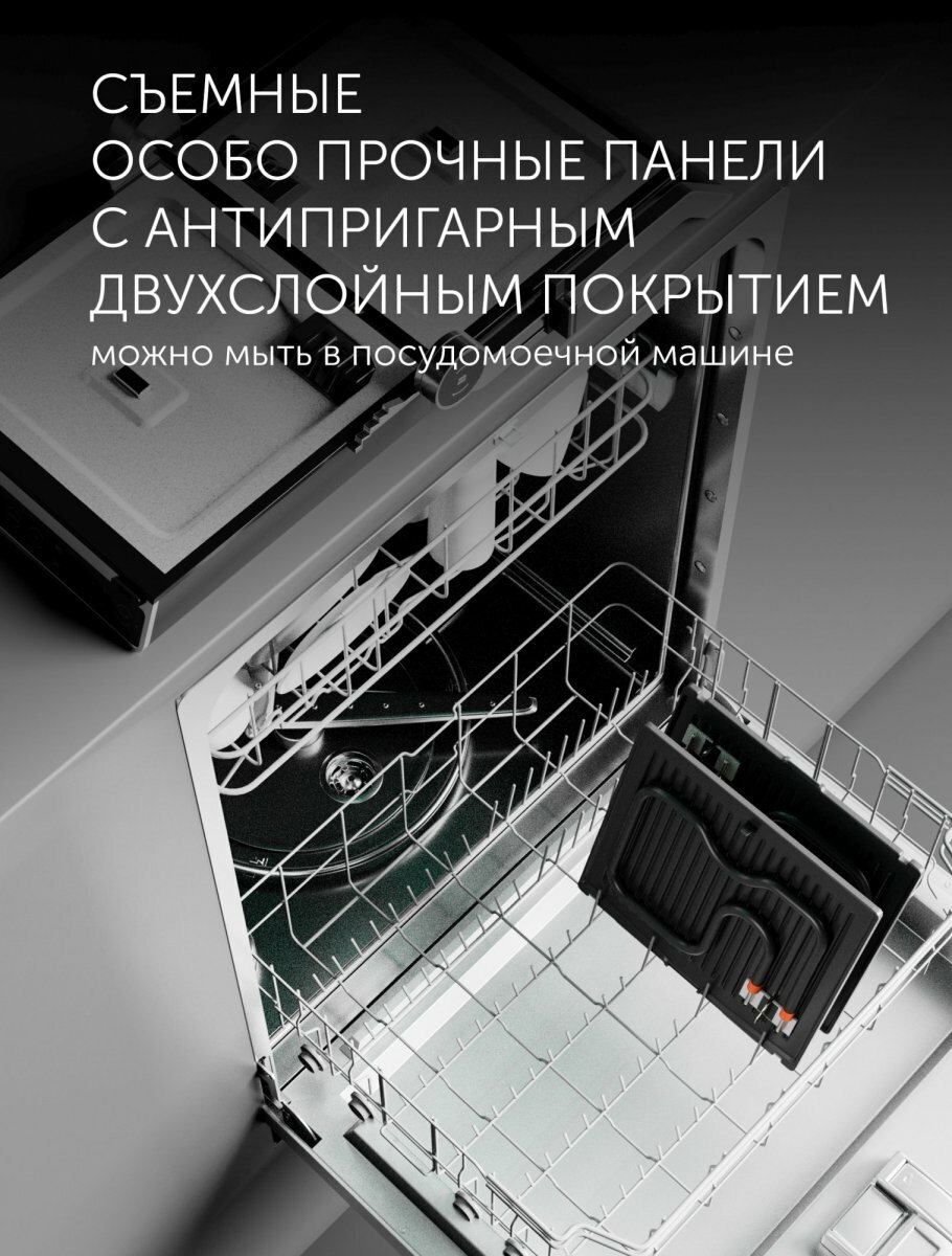 | Особенности | антипригарное покрытие / поддон для сбора жира / съемные пластины |