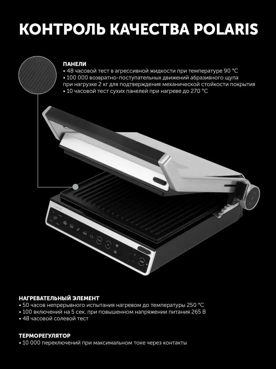 | Дополнительная информация | автоматическое определение толщины продукта; 6 автоматических программ; 4 степени прожарки: rare, med rare, medium, well done |