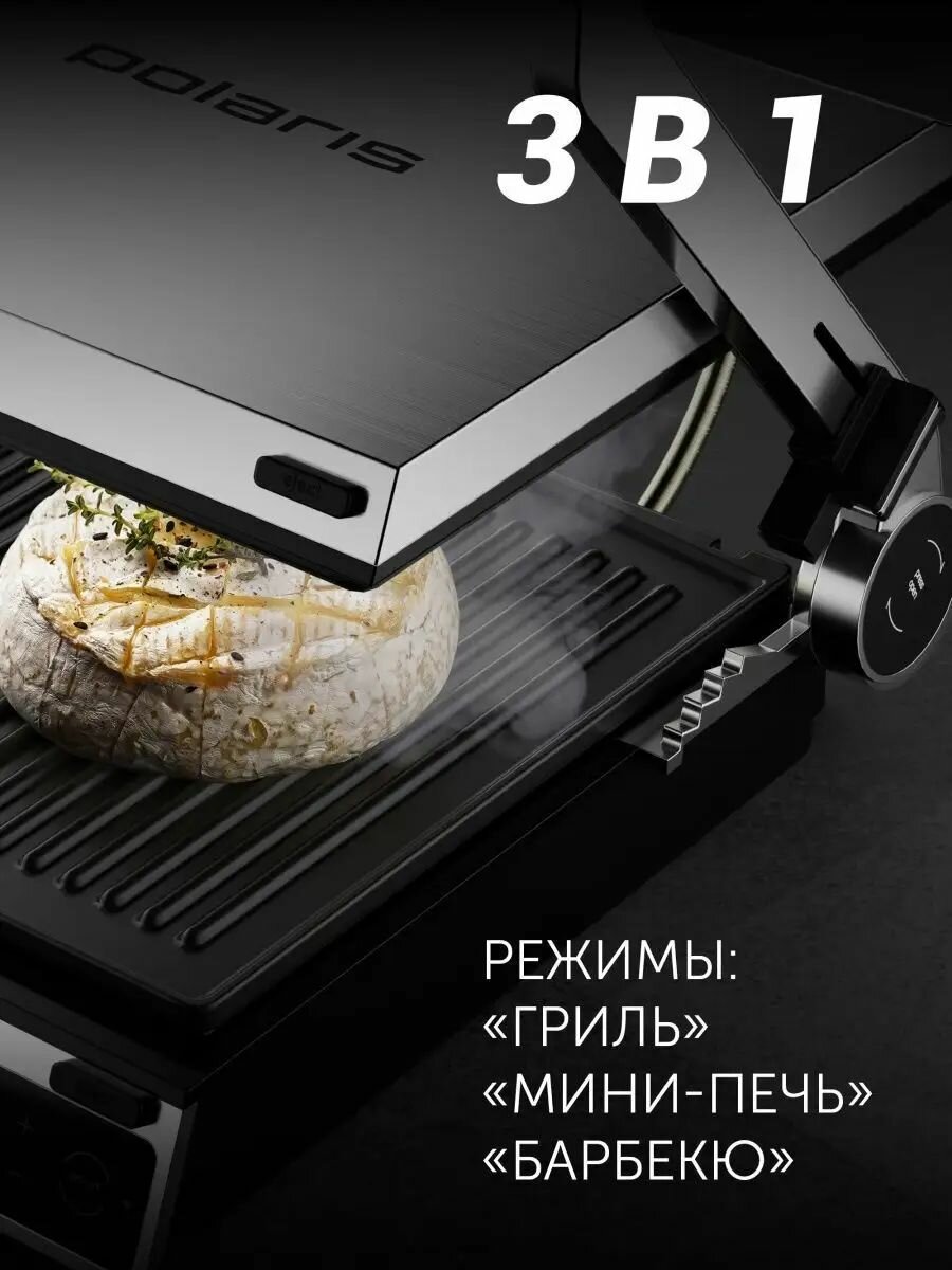Электрогриль Polaris PGP 2502, 3 в 1: гриль, мини-печь, барбекю, 2 съемные панели с антипригарным покрытием