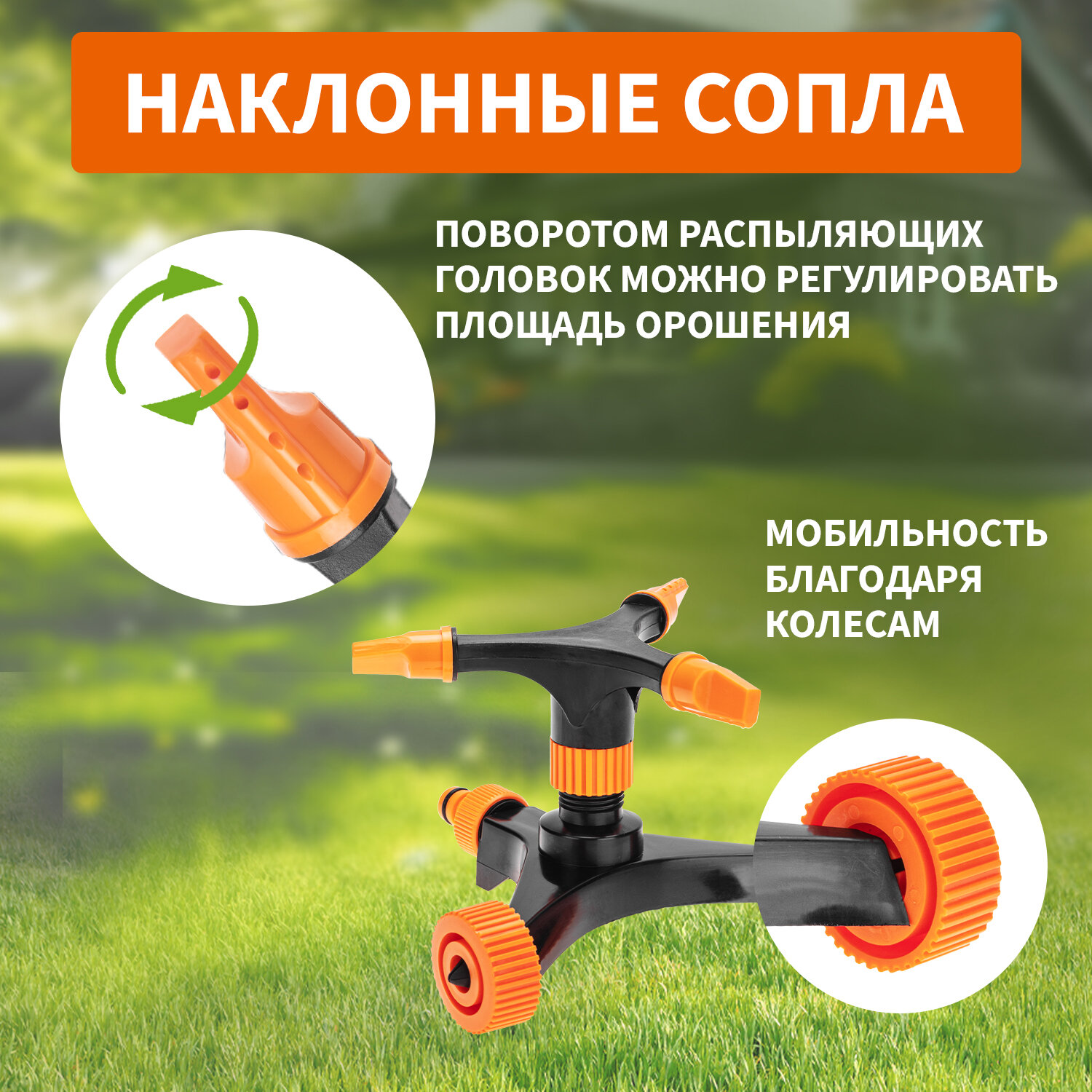 Автополив дождеватель для полива на колесах ЧЕТЫРЕ СЕЗОНА, круговой, наклонные сопла интересное: