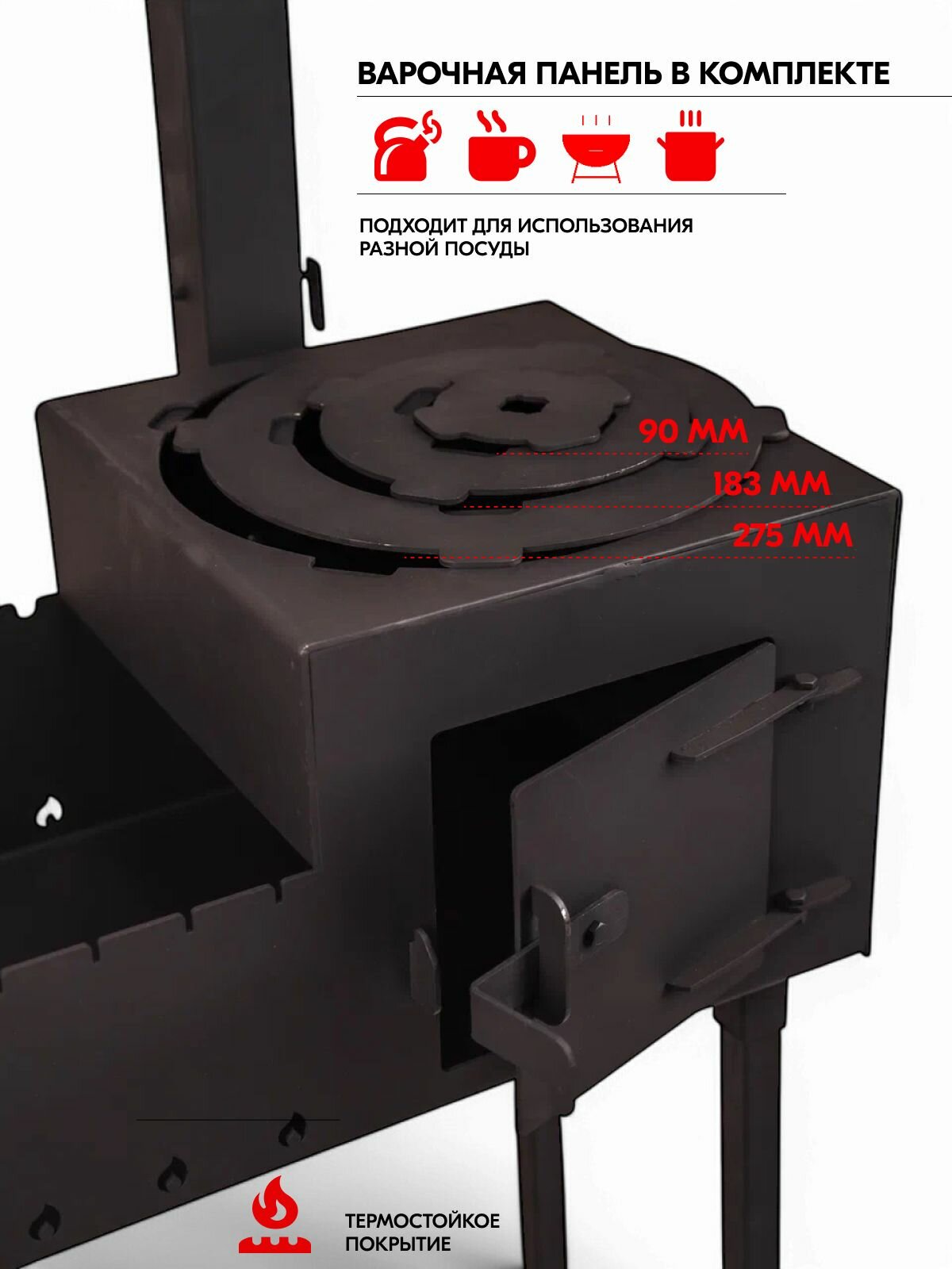 Мангал с печкой под казан "Мастер" с дополнительной трубой и полкой