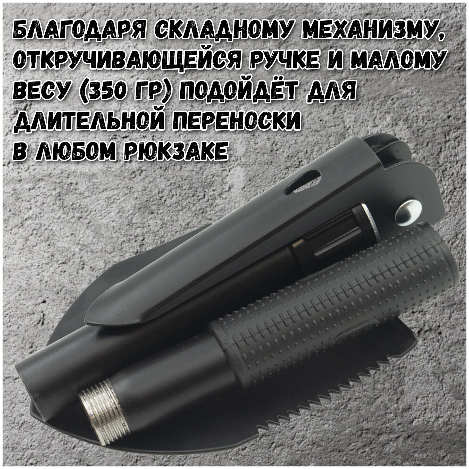 Лопата складная многофункциональная OS-D10-22-1 стальная / Лопата туристическая