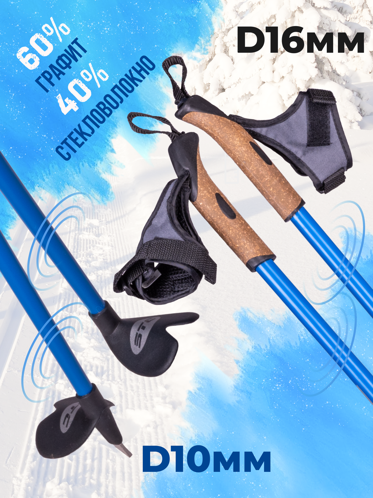 Лыжные палки STC Cyber Blue 125 см деколь гибрид 60/40 для беговых лыж гоночные интересное: