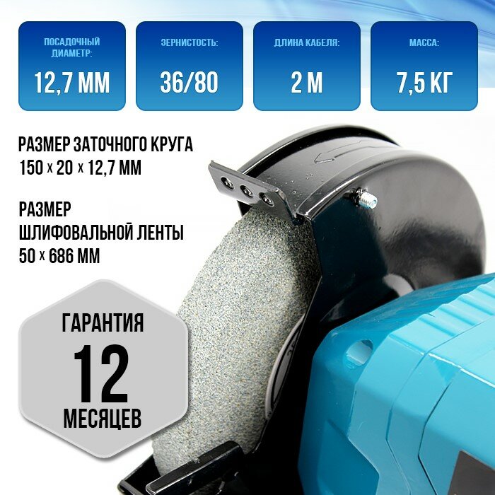 Точильный станок MTШ-150/300Л, мощность 300W, защитный кожух, шлифовальная лента интересное: