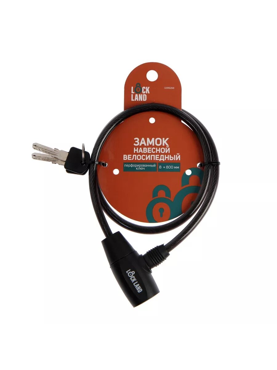 Замок навесной велосипедный LOCKLAND, 8х800мм