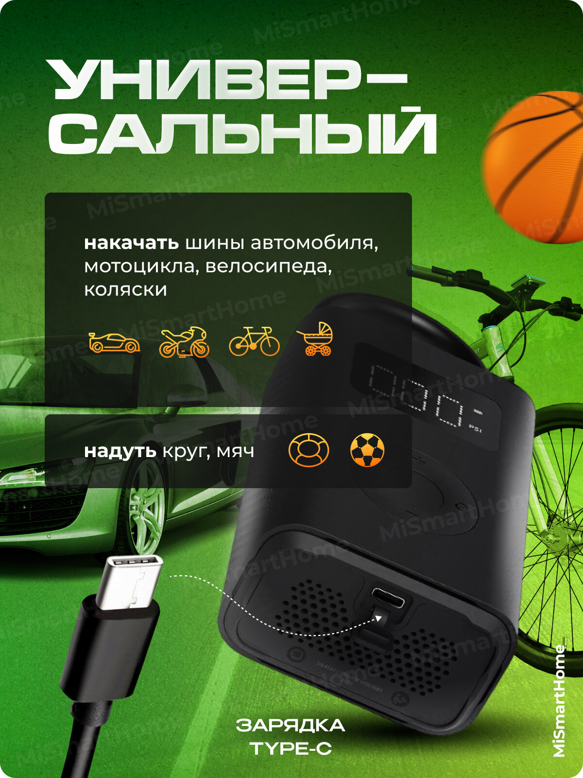 Насос Xiaomi Mijia, универсальный, от аккумулятора, 5 переходников, сумка для хранения интересное: