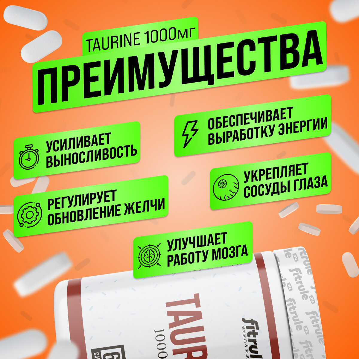 Купить Аминокислота Fitrule Taurine, без вкуса, таурин, 1000мг, 60шт