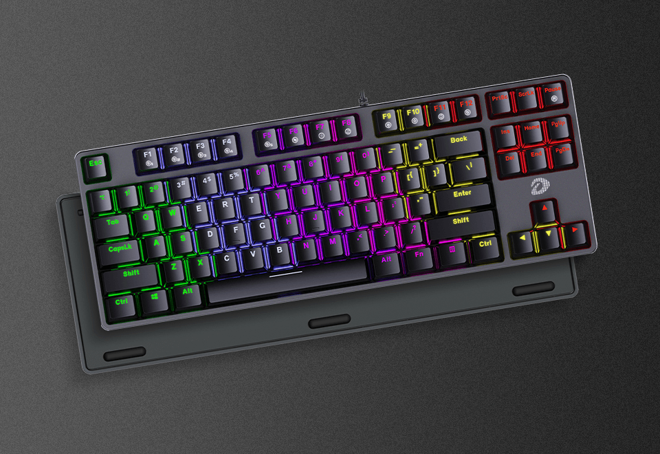 Купить Клавиатура проводная Dareu EK87 Black (черный), подсветка Rainbow, D-свитчи Blue, раскладка клавиатуры ENG/RUS
