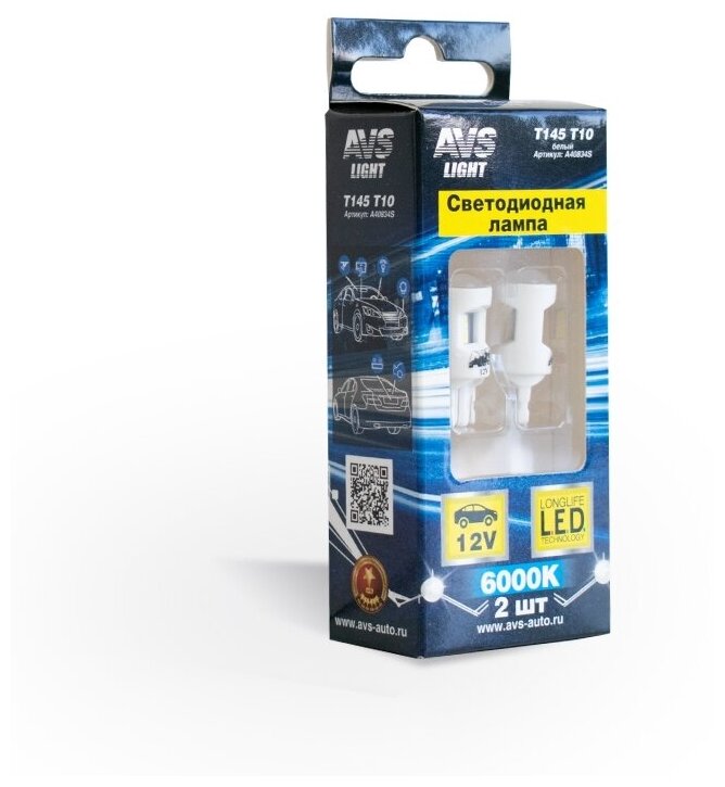 Светодиодные лампы AVS A80605S, 5 SMD, T10 W5W W2.1x9.5D, 6000 К, 2 шт.