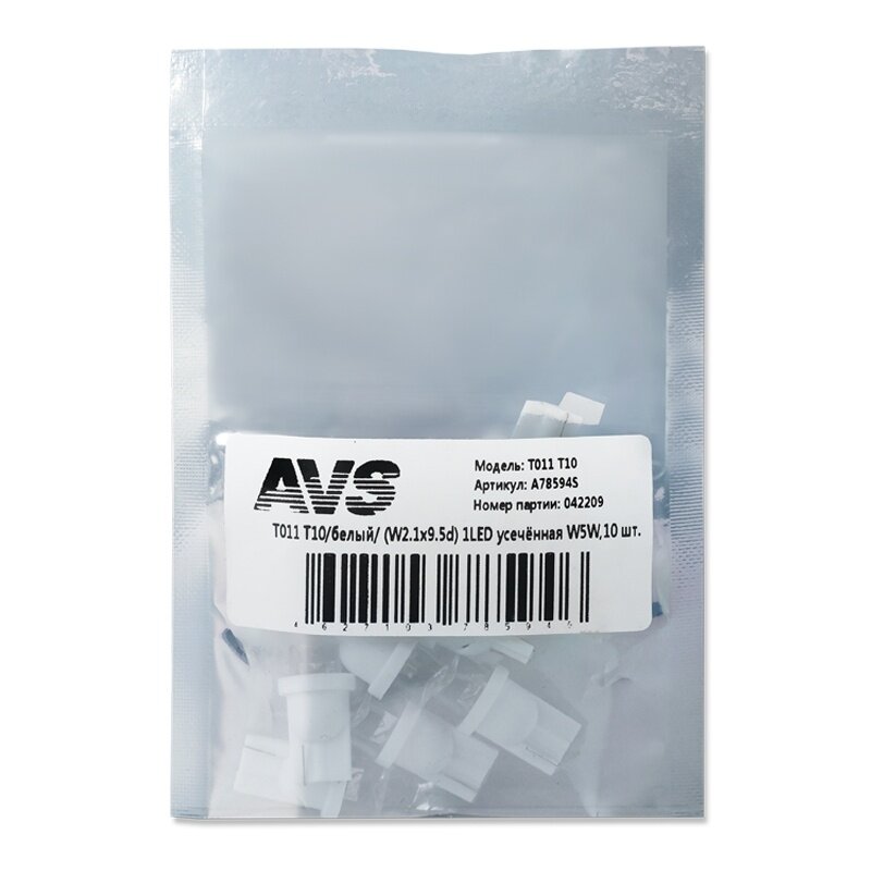 Купить Лампы AVS T10, T011, W2.1x9.5d, 1 LED, белый свет, 6000K, 1,2Вт, 10шт