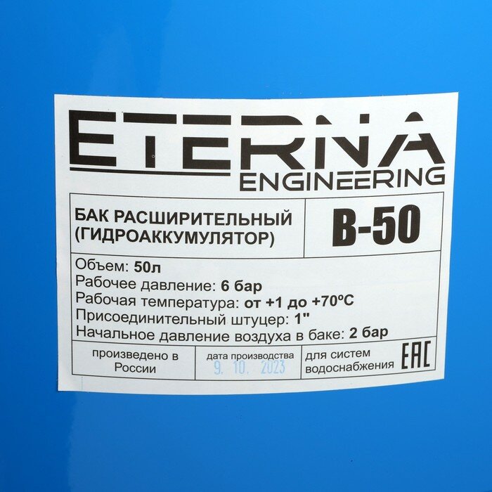 Гидроаккумулятор вертикальный 50 л. ETERNA (цвет синий) Нижнее интересное: