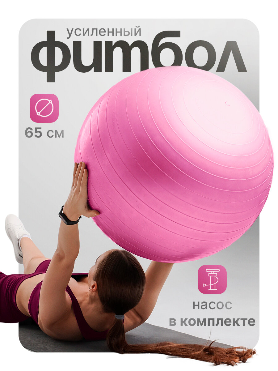Купить Фитбол мяч гимнастический для фитнеса Conflate 65 см, розовый