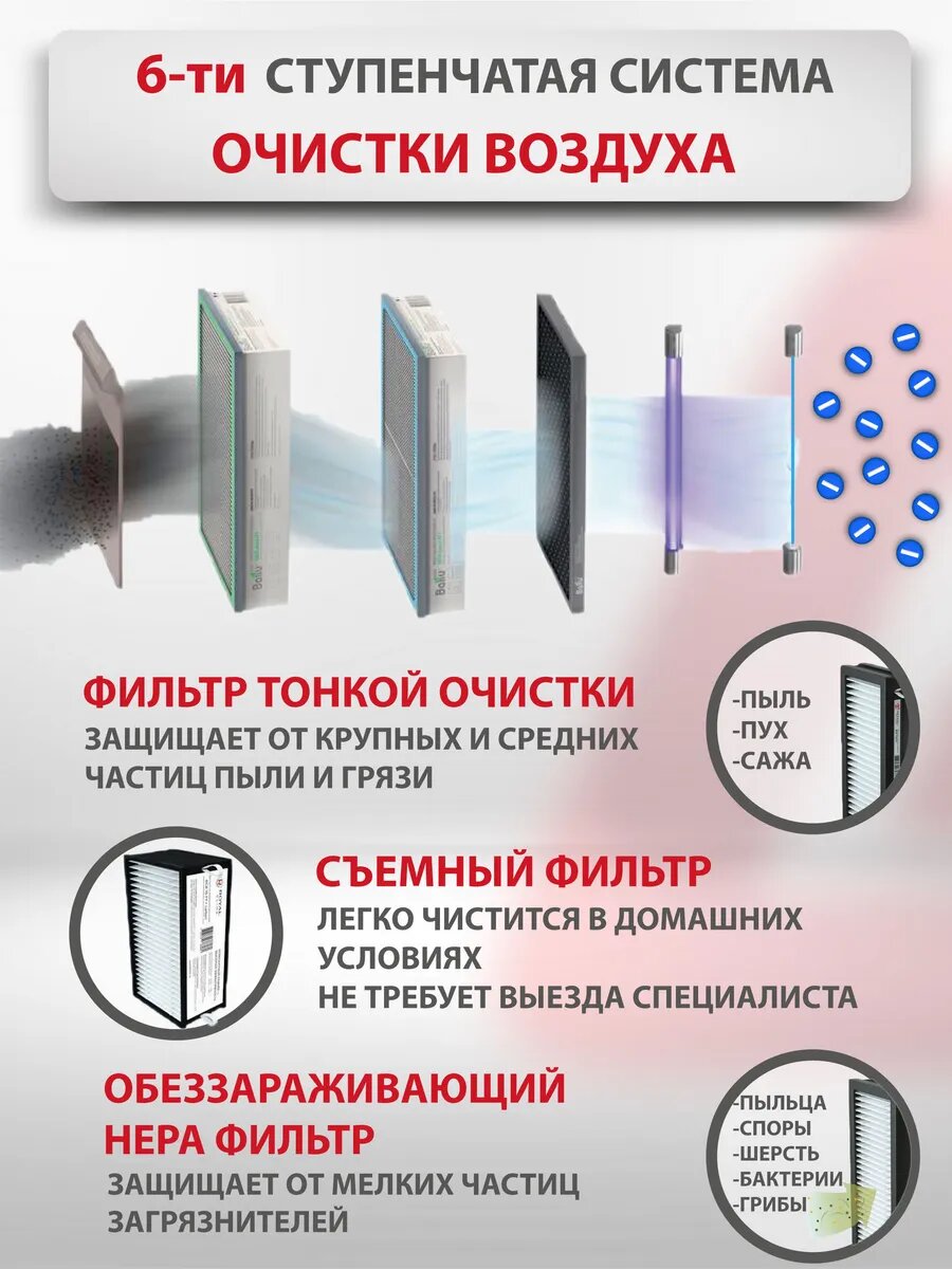 Очиститель воздуха приточный Ballu ONEAIR ASP-100 белый + фильтр F5 в подарок