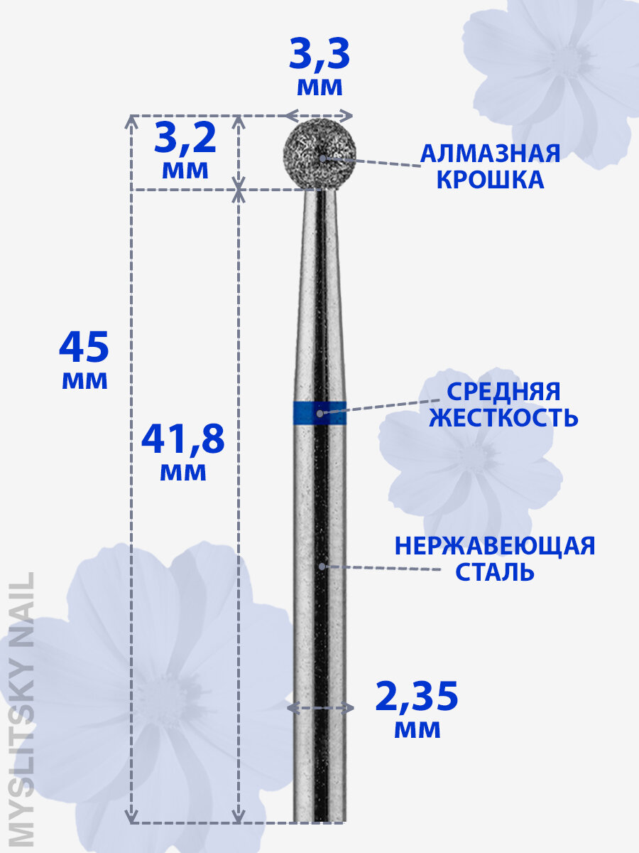 Владмива Фреза для маникюра и педикюра алмазная 806 104 001 524 040 Средняя синяя шар для кутикулы (10 шт)