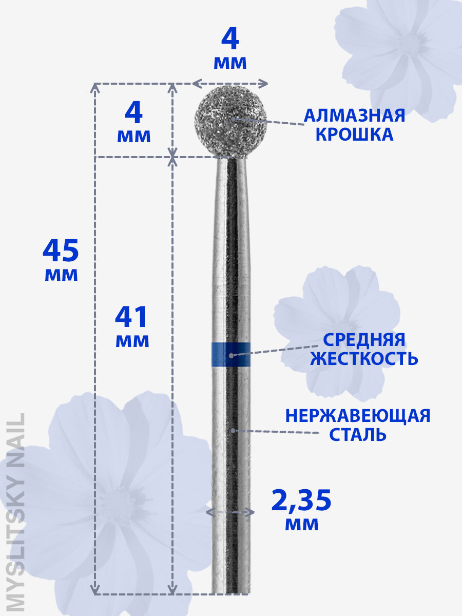 Владмива Фреза для маникюра и педикюра алмазная 806 104 001 524 040 Средняя синяя шар для кутикулы (10 шт)