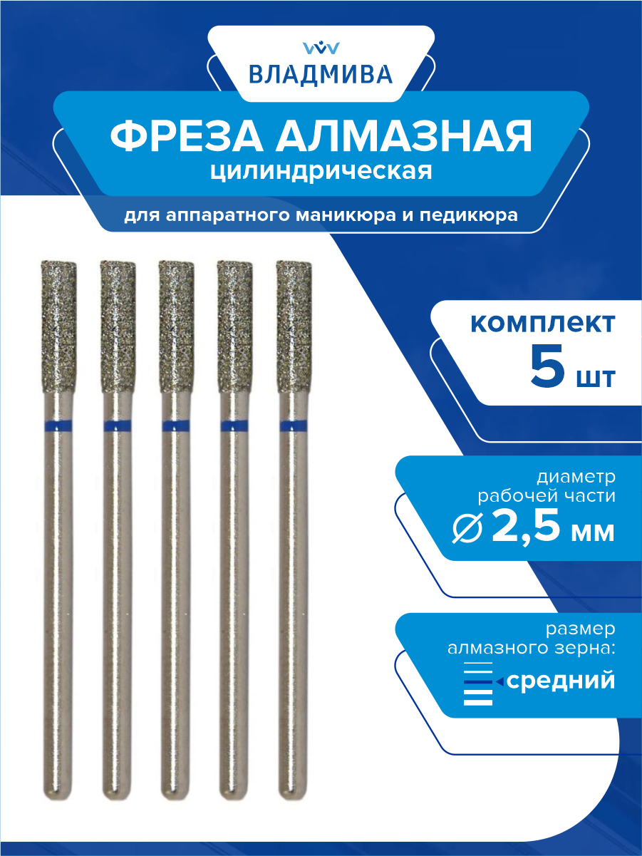 Фреза алмазная цилиндрическая, средней зерн. 2,5 мм. 5 шт.(866.104.107.060.025) интересное: