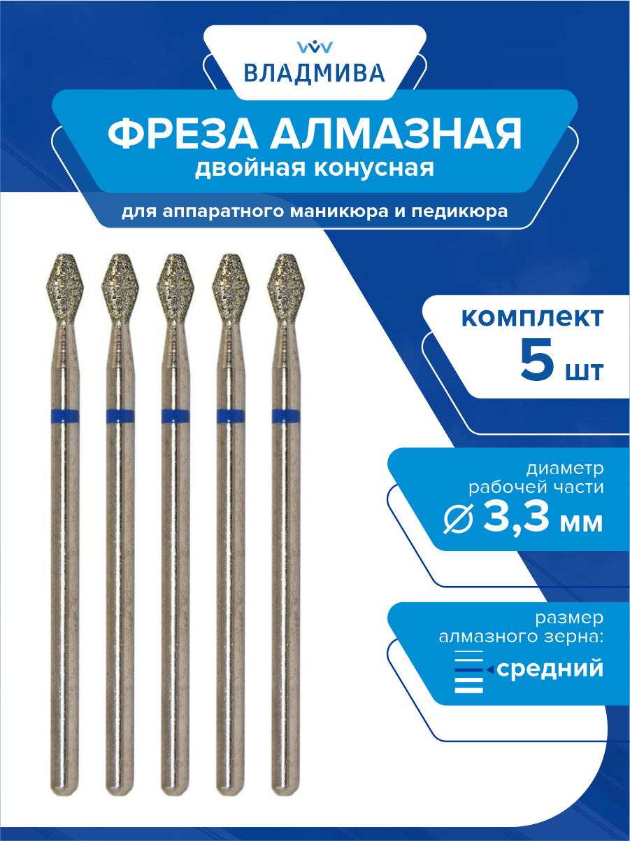 Фреза алмазная двойная конусная, средней зерн. 3,3 мм. 5 шт.(866.104.037.040.033) интересное: