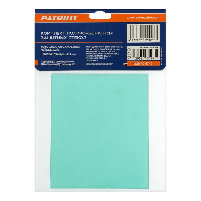 Стекло защитное 105 х 87.5 мм (5 шт., внешнее) PATRIOT 880104745