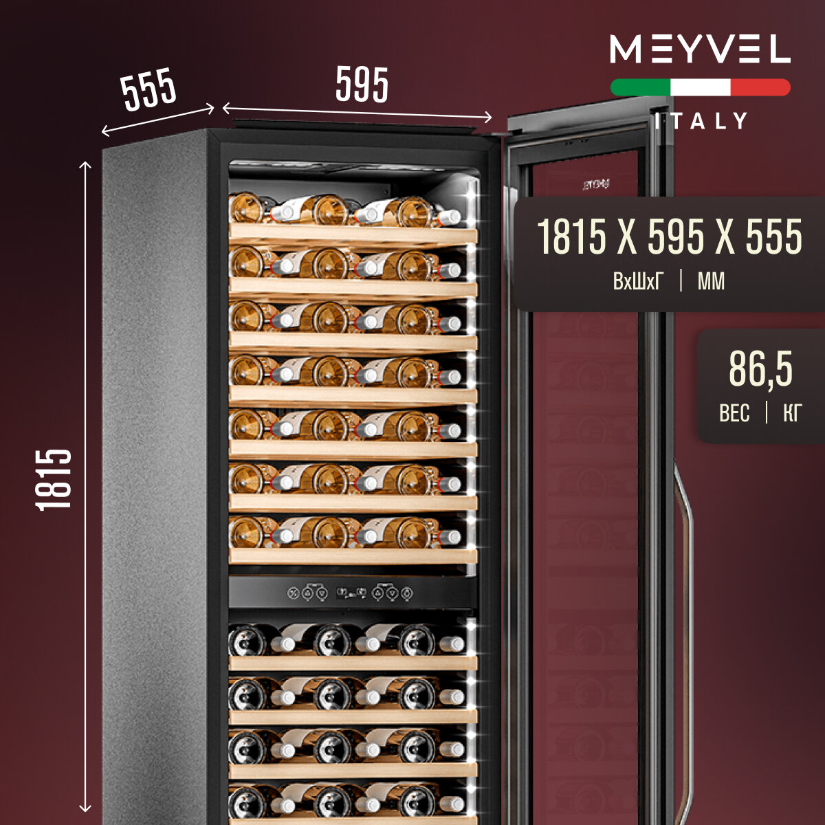 Винный холодильный шкаф Meyvel MV83-KSB2 компрессорный (встраиваемый холодильник для вина на 96 бутылок) интересное: