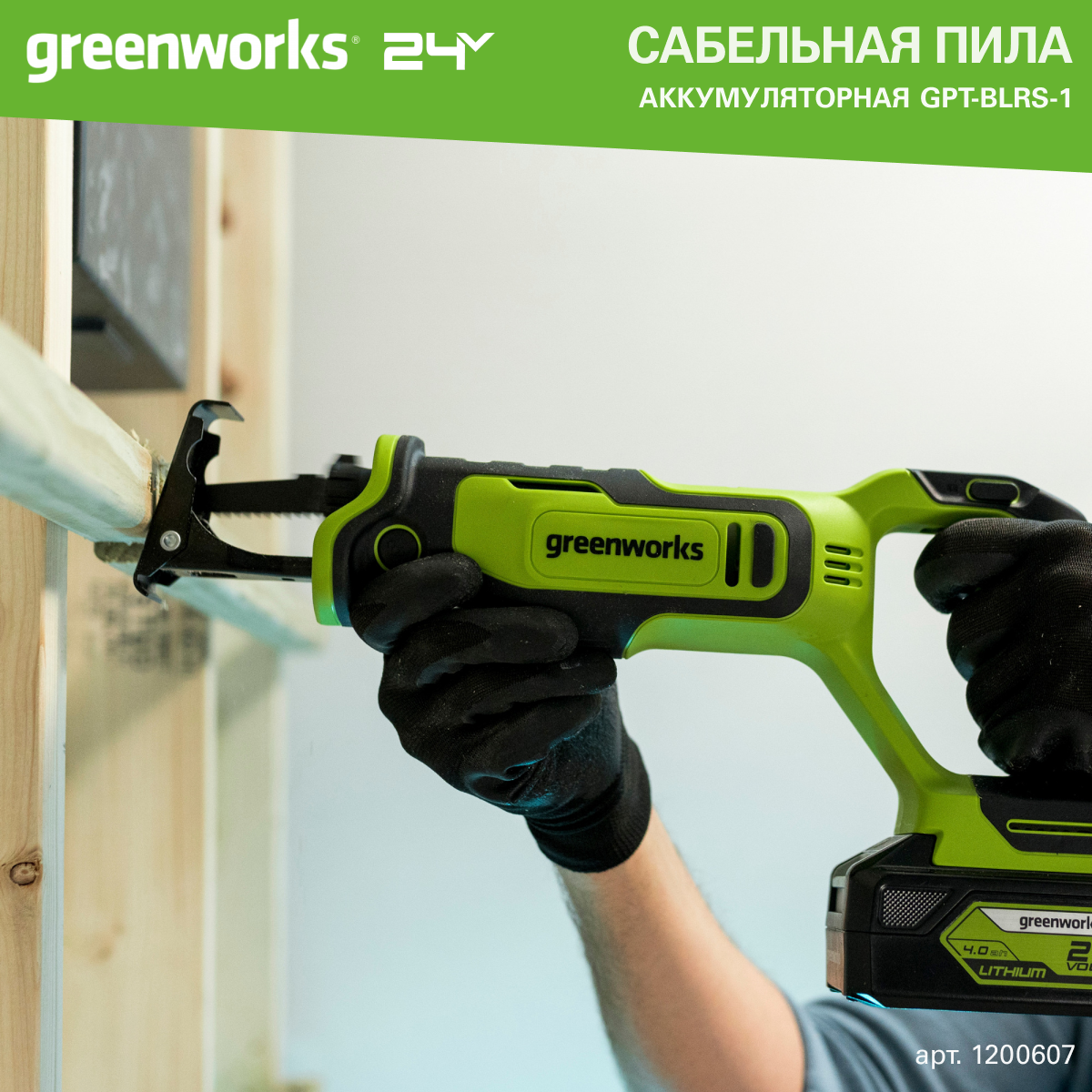 Пила сабельная Greenworks GPT-BLRS-1, 24V, бесщеточная, 0-3000/мин, 115 мм, без АКБ и ЗУ (1200607) интересное: