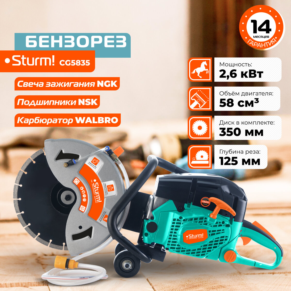 Купить Бензорез Sturm! CG5835 2,6кВт/3,5л. с, двигатель 58см3, диск 350мм, карбюратор WALBRO