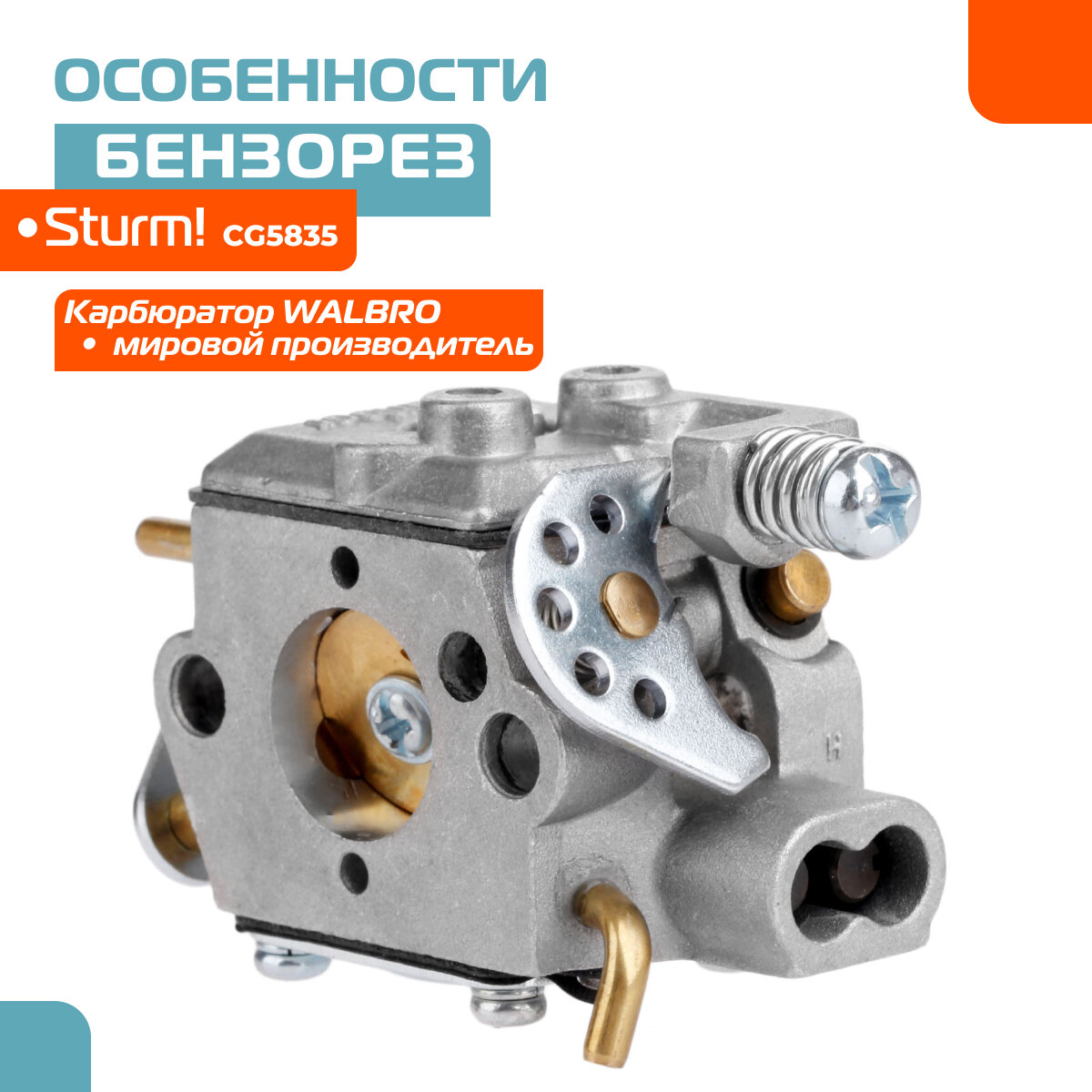 Бензорез Sturm! CG5835 2,6кВт/3,5л. с, двигатель 58см3, диск 350мм, карбюратор WALBRO интересное: