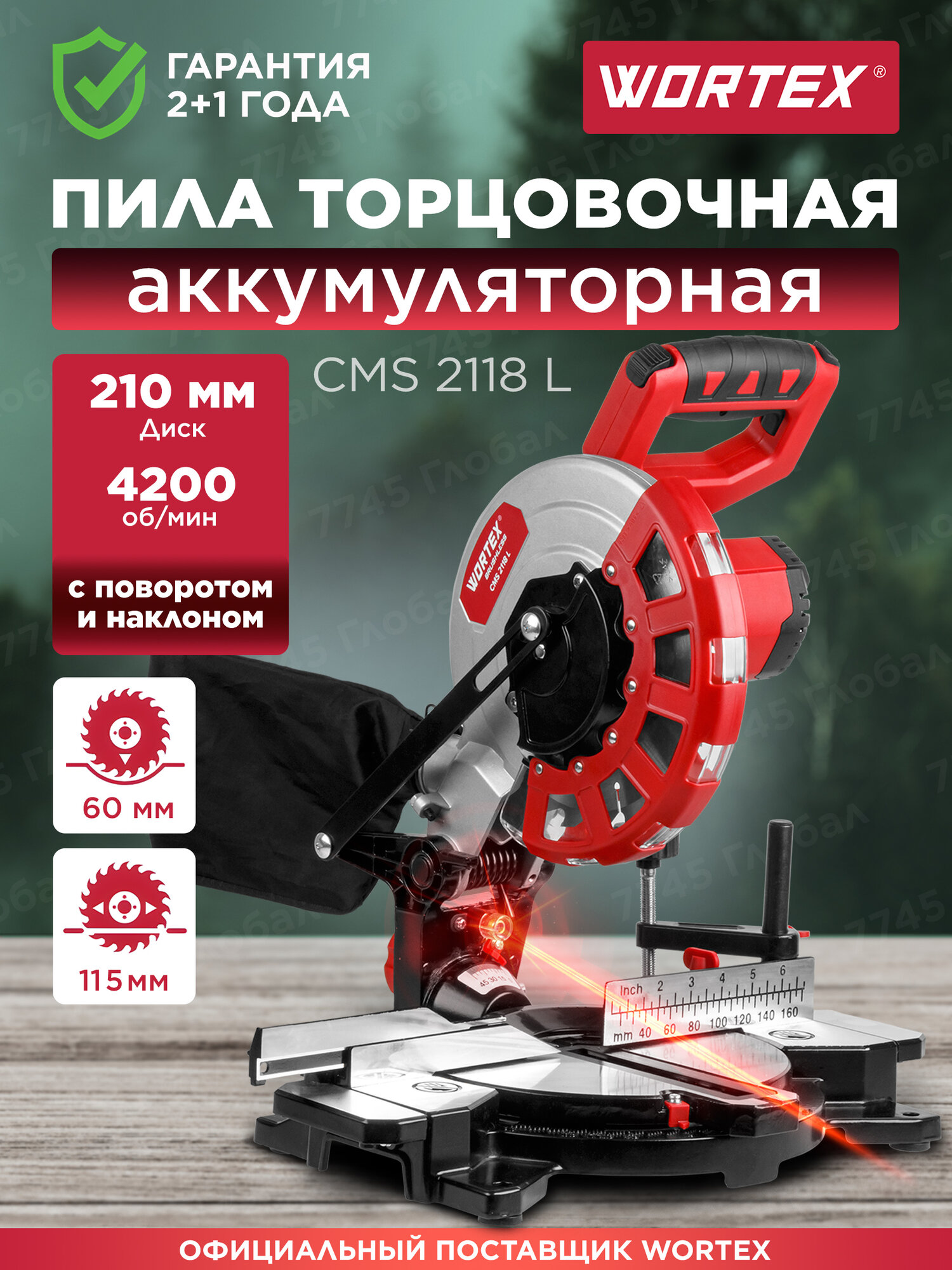 Аккумуляторная торцовочная пила без АКБ и ЗУ WORTEX СMS 2118 L (1329458) интересное: