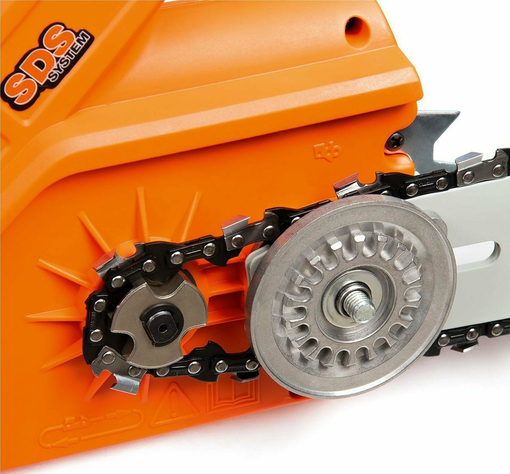 | Особенности конструкции | бесключевая замена оснастки, блокировка кнопки включения, прорезиненная рукоять, регулировка натяжения цепи без инструмента |