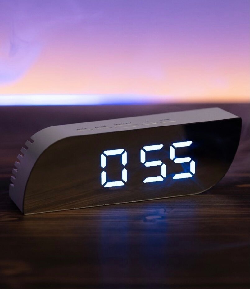 СохранитьЭлектронные часы будильник, настольные с зеркальным дисплеем и подсветкой, белые цифры интересное: