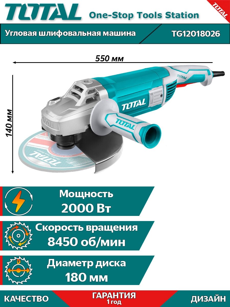 Угловая шлифовальная машина TOTAL TG12018026 2000Bт 180мм интересное: