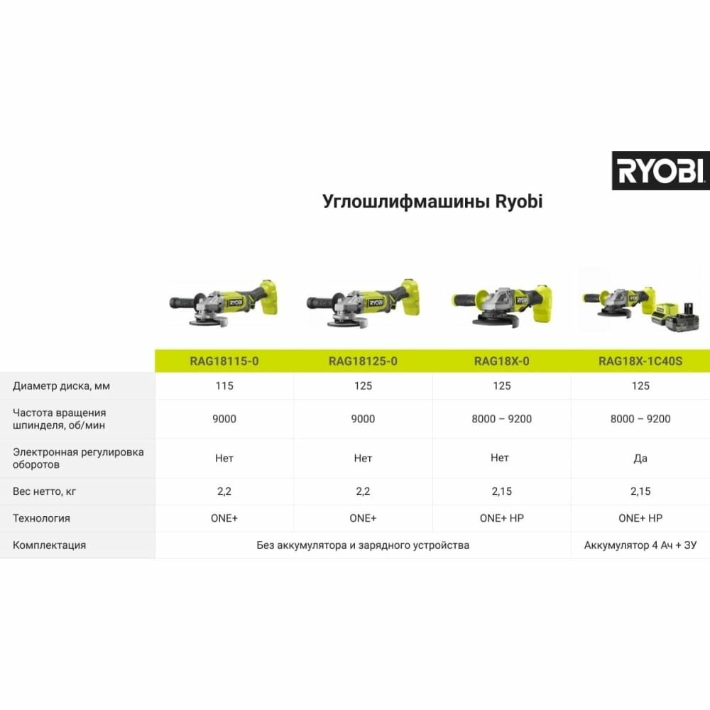 Углошлифмашина Ryobi ONE+ RAG18115-0 5133005402 интересное:
