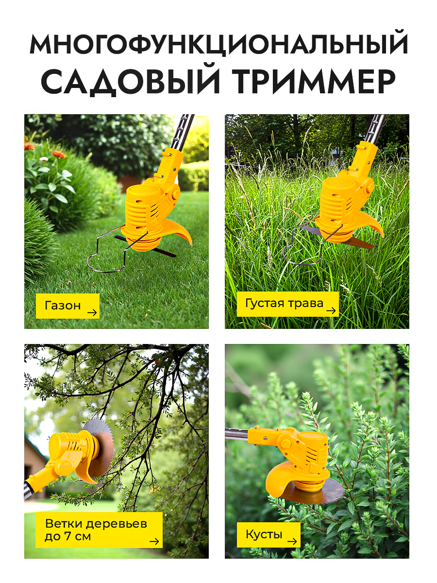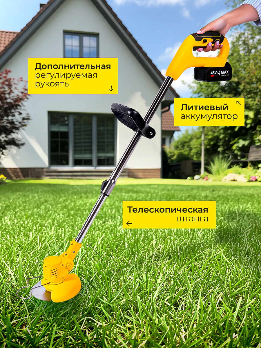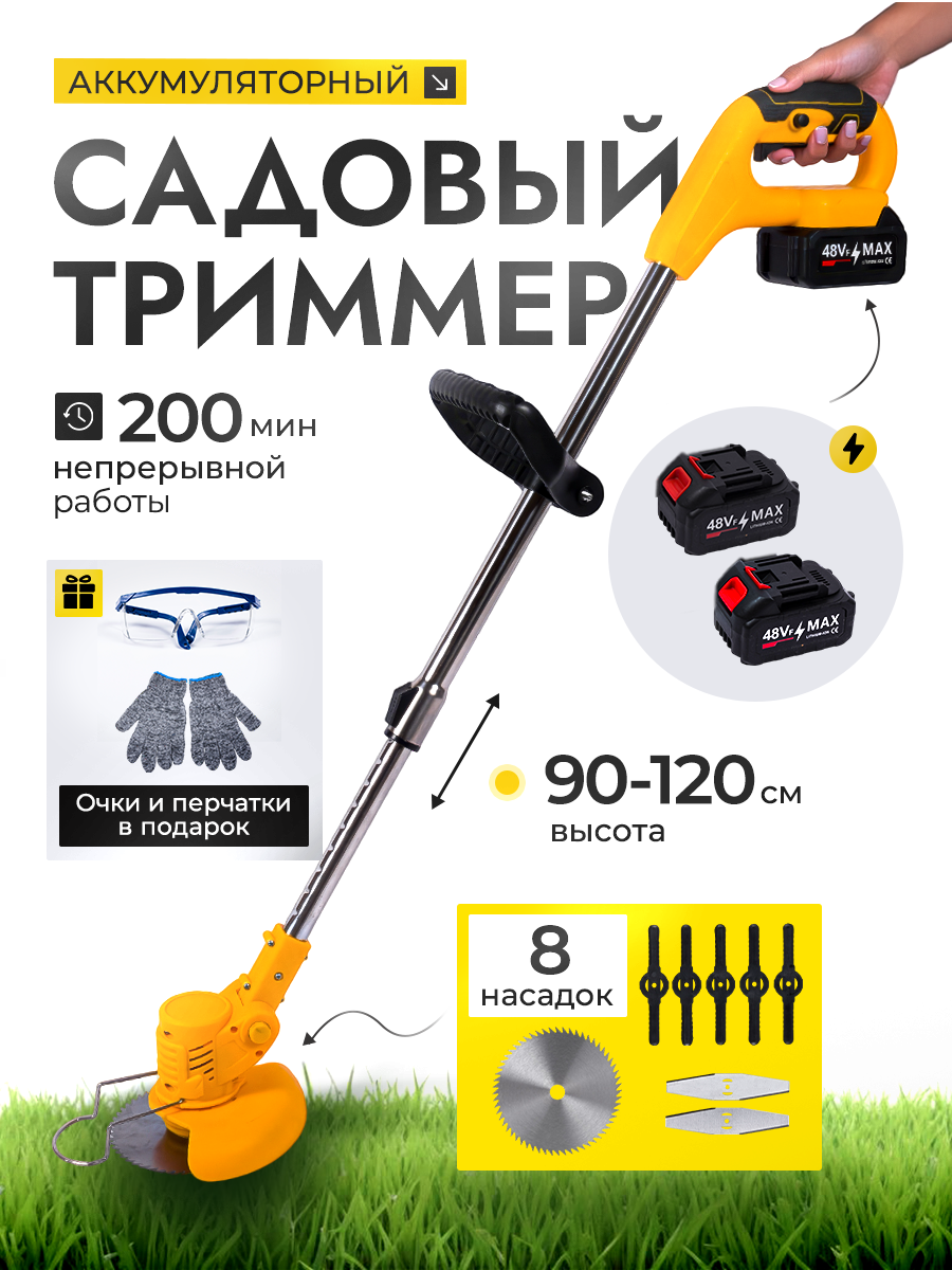 Триммер садовый, аккумуляторный, 600 Вт, 10000 оборотов в минуту, 2 аккумулятора интересное: