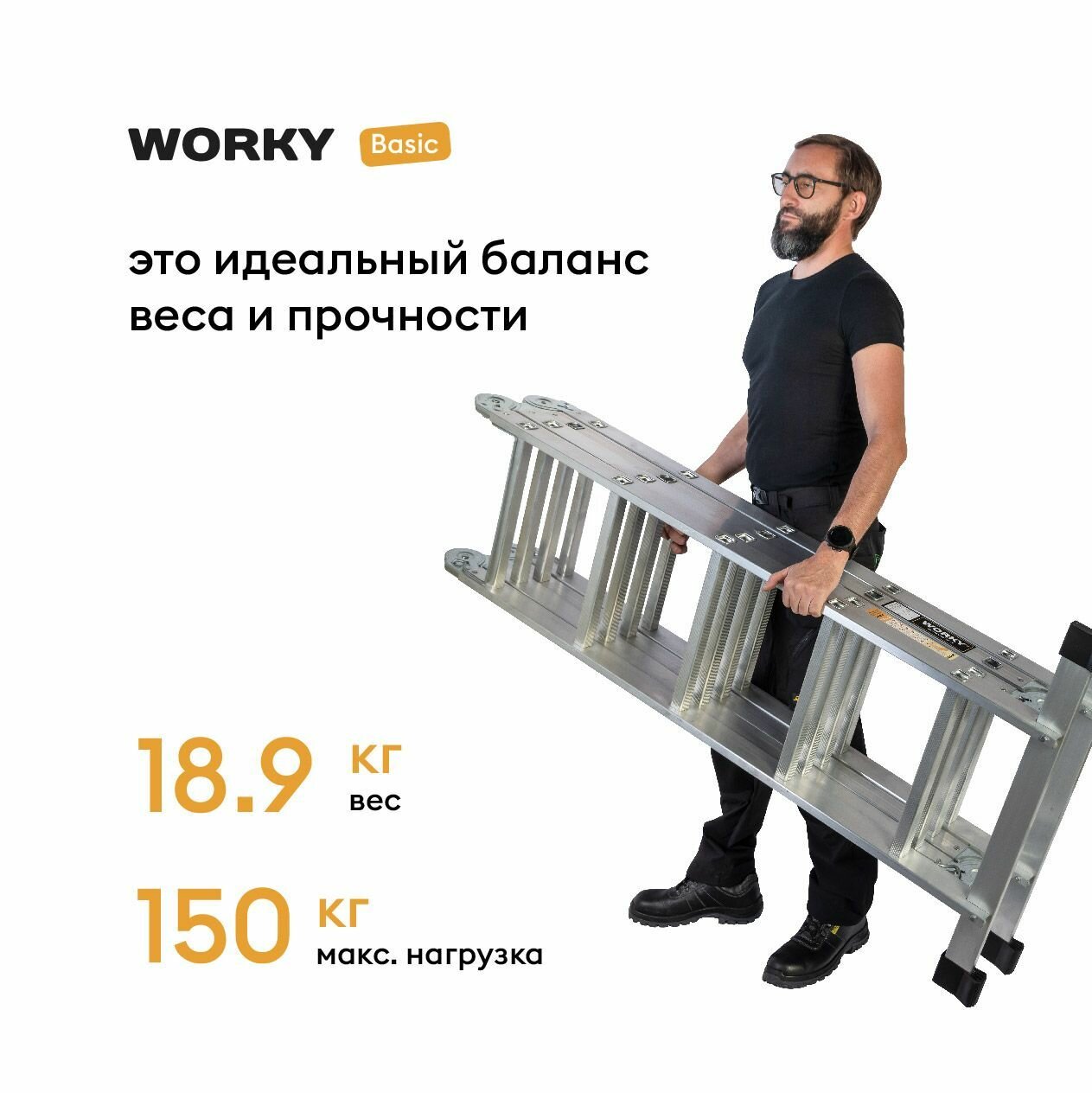 Купить Лестница стремянка 4х7 трансформер WORKY Basic, высота 8,2м
