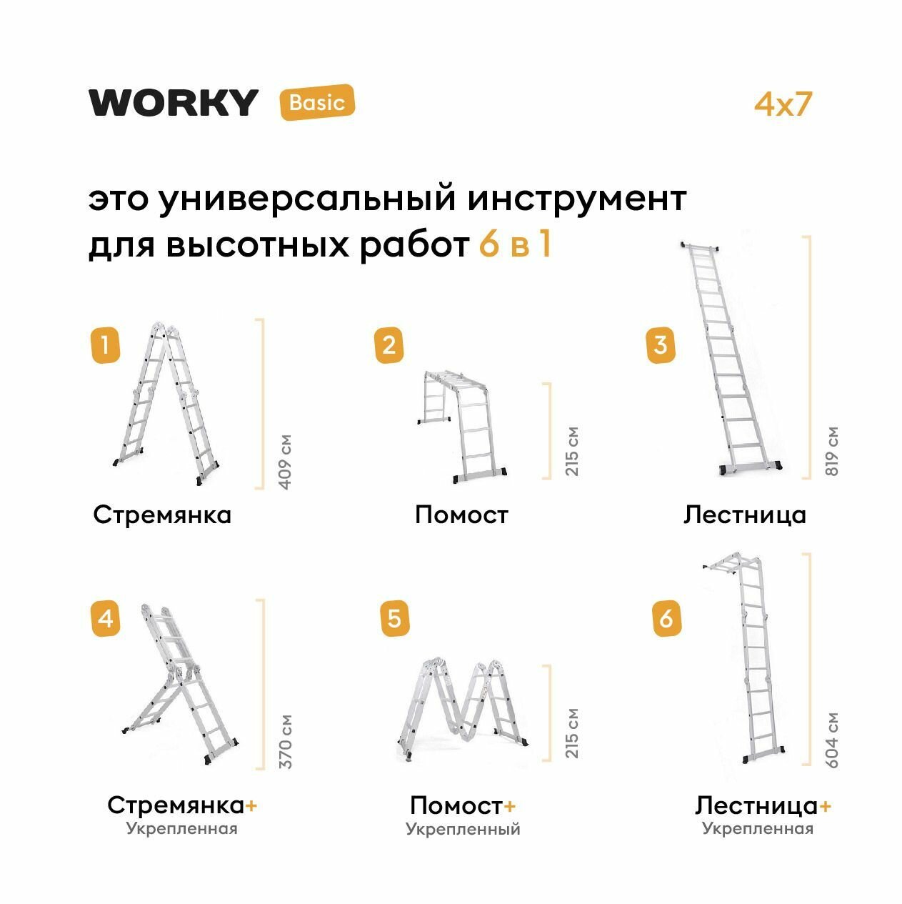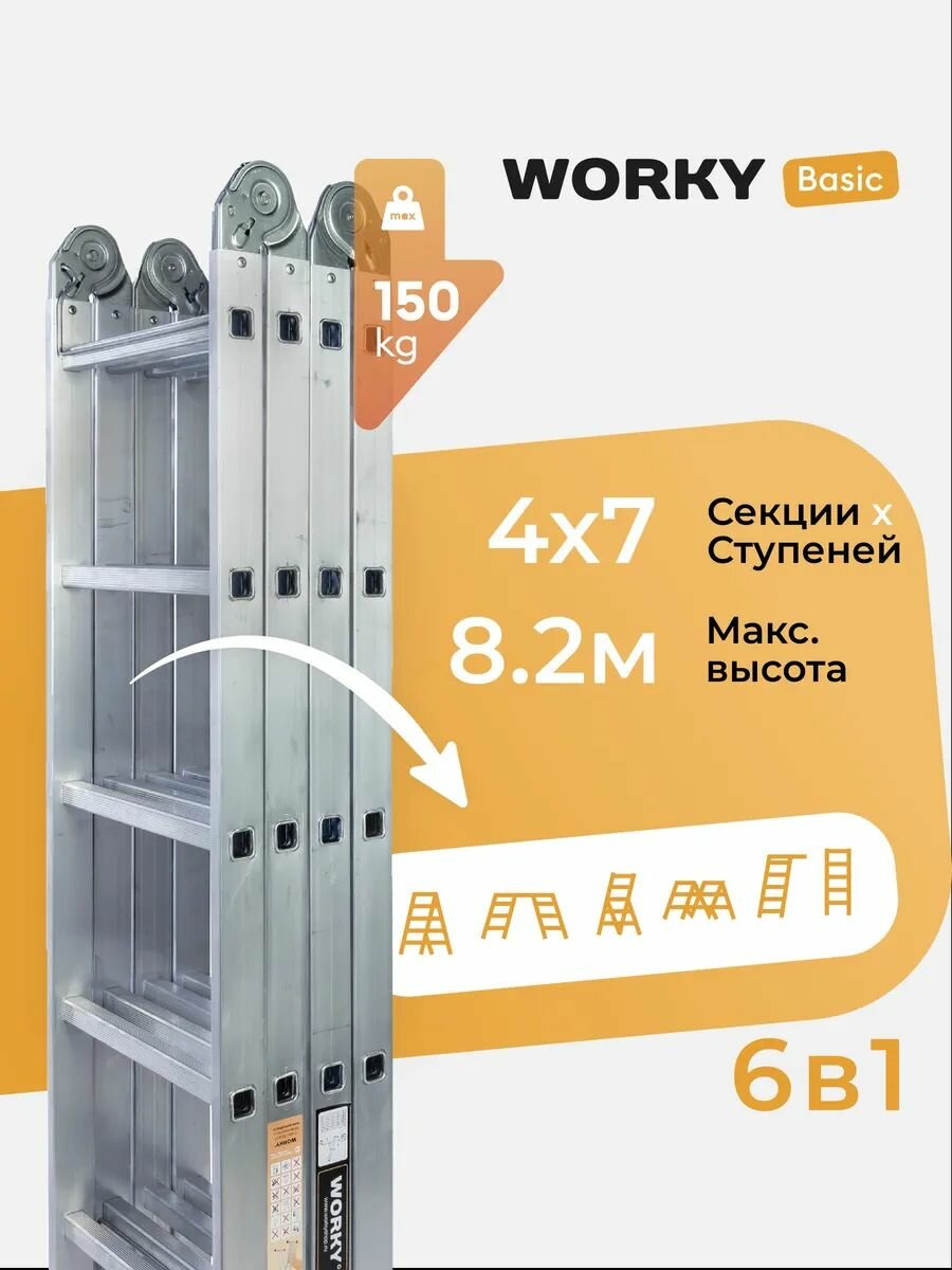 Лестница-стремянка 4х7 трансформер WORKY Basic, высота 8,2м