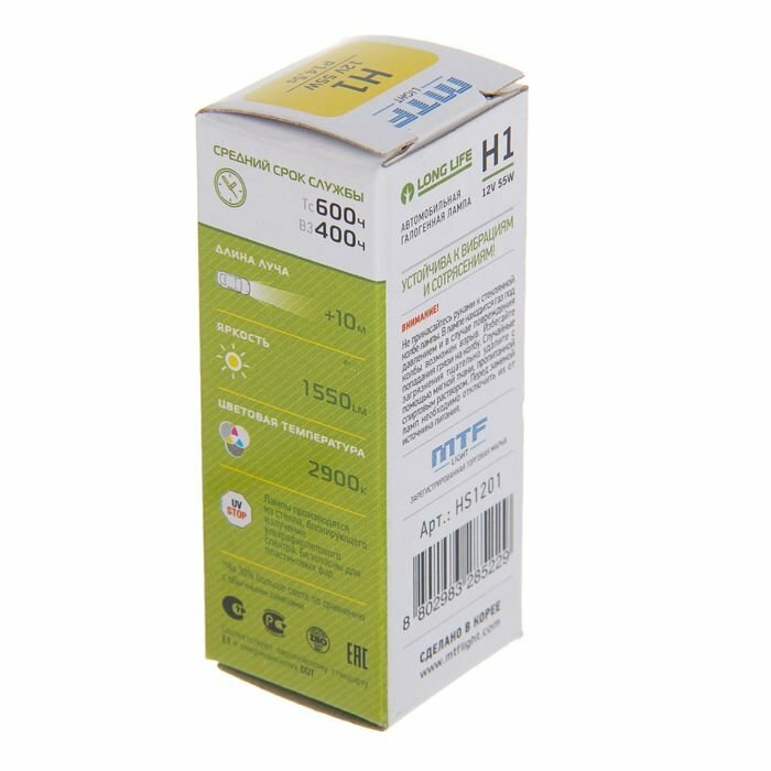 Лампа галогенная MTFLIGHT LONG LIFE x4 12V H1 55W HS1201
