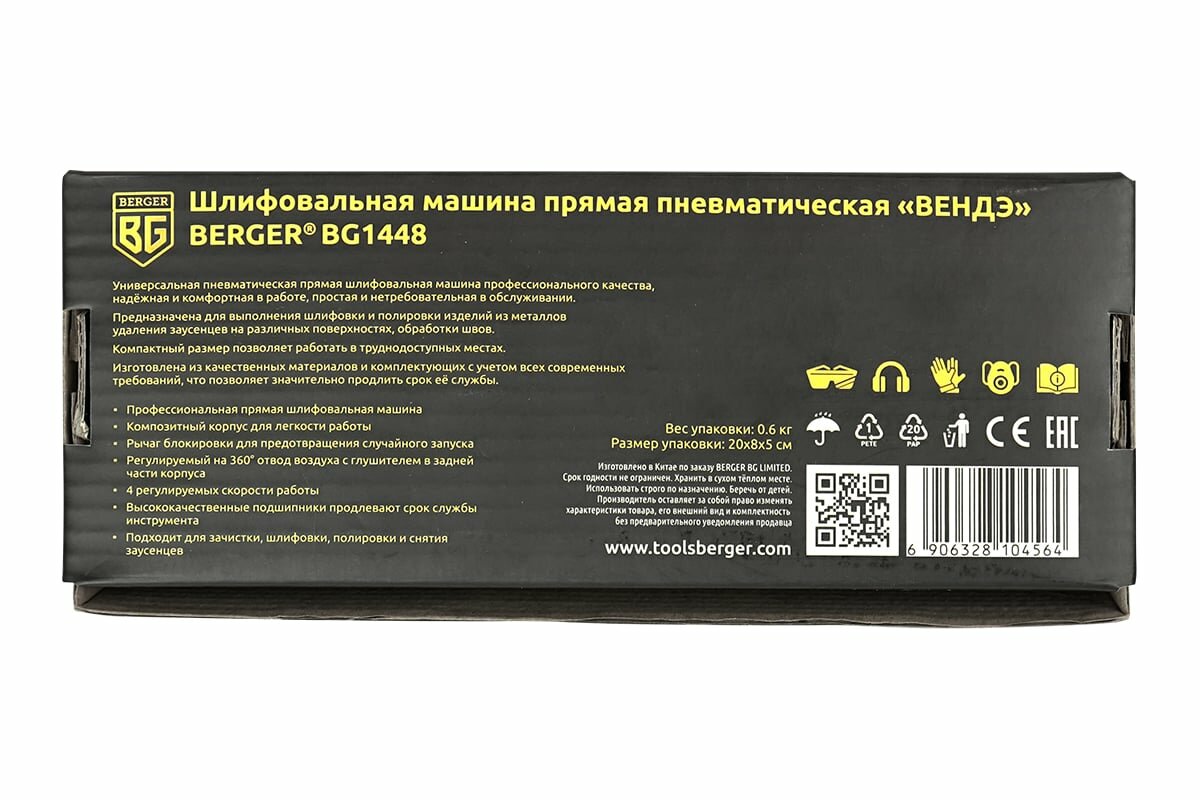Berger BG "Шлифовальная машина прямая пневматическая 1/8 - 1/4 BG1448 интересное: