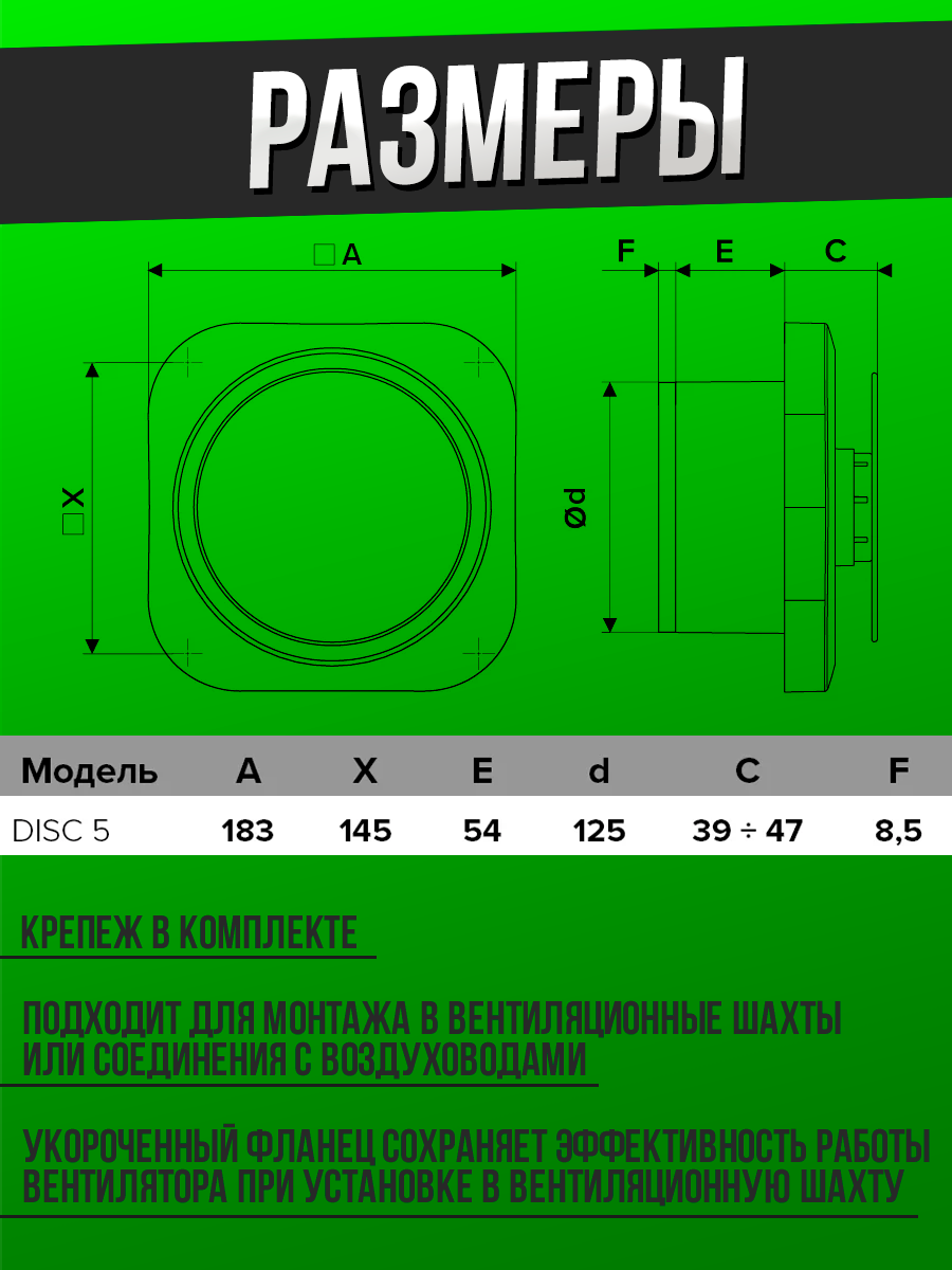 DISC 5C-02, Вентилятор с обратным клапаном, шнуровым выключателем D 125, новинка! интересное:
