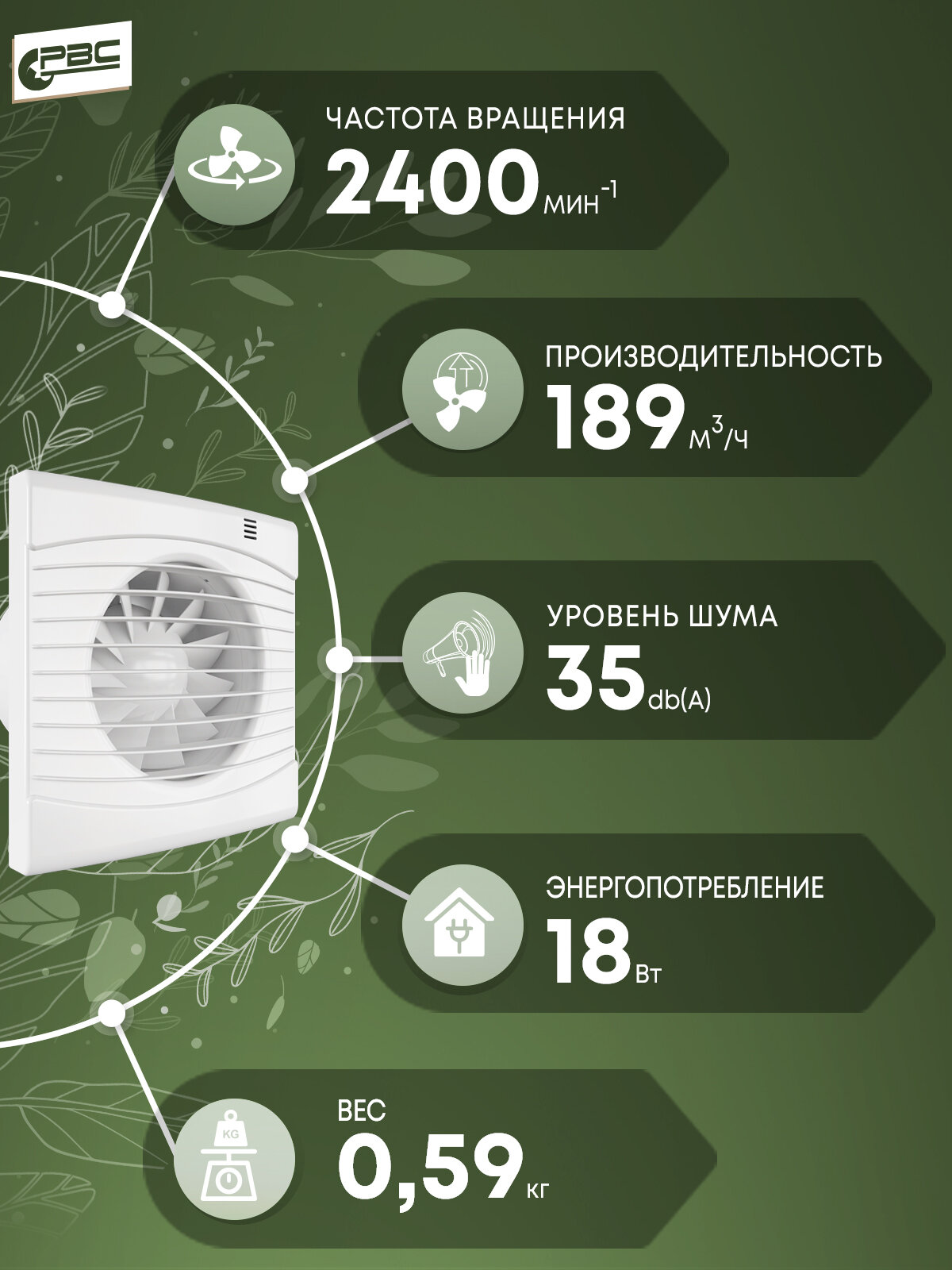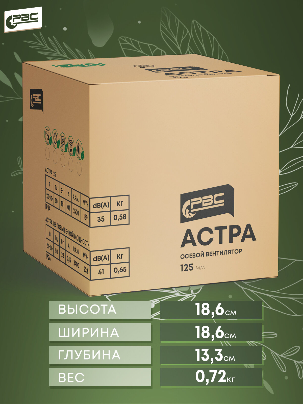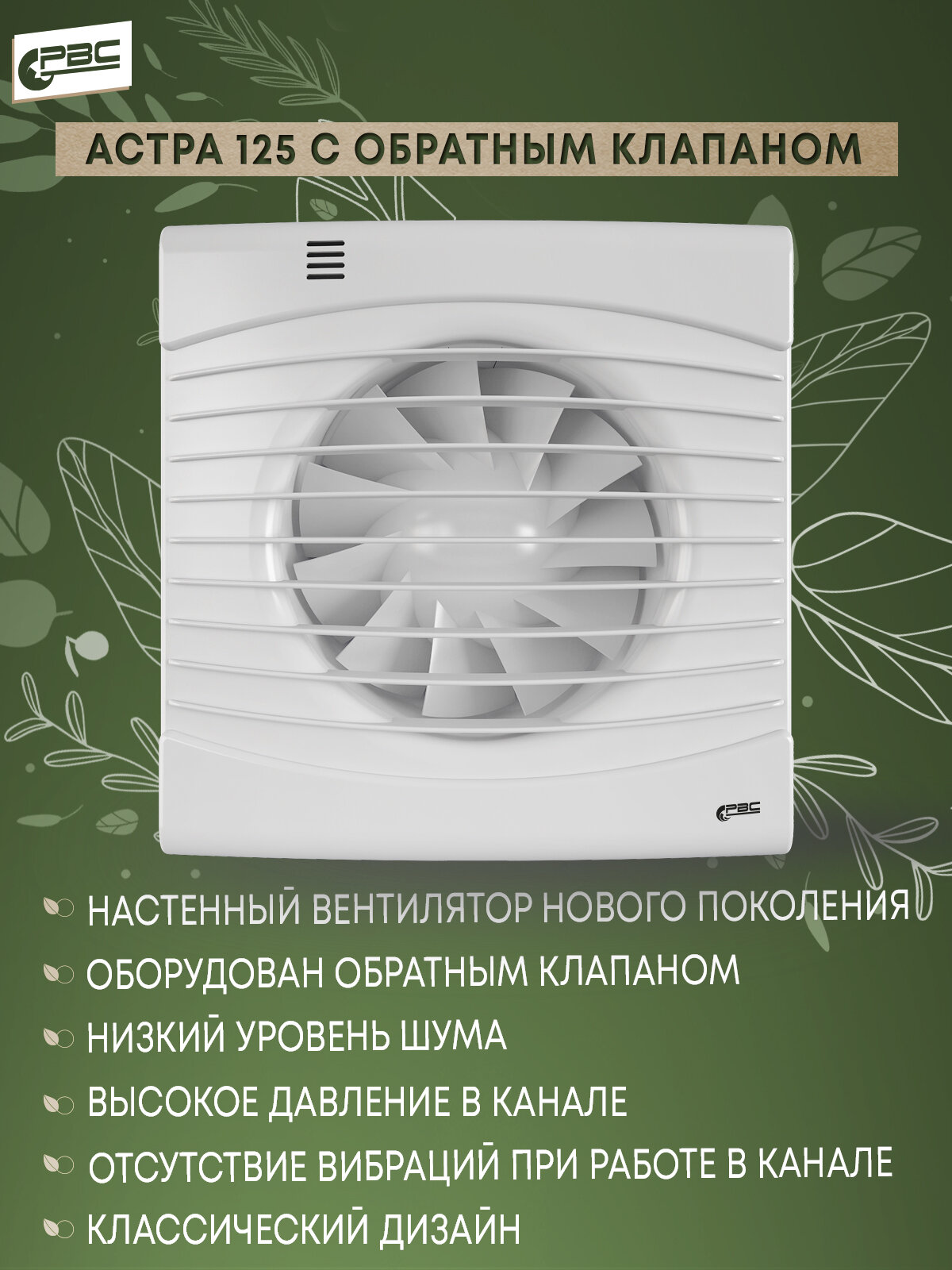 Вентилятор вытяжной Рвс Астра 125 повышенной мощности, 23 Вт, 41 дБ, 228 м3/ч, обратный клапан