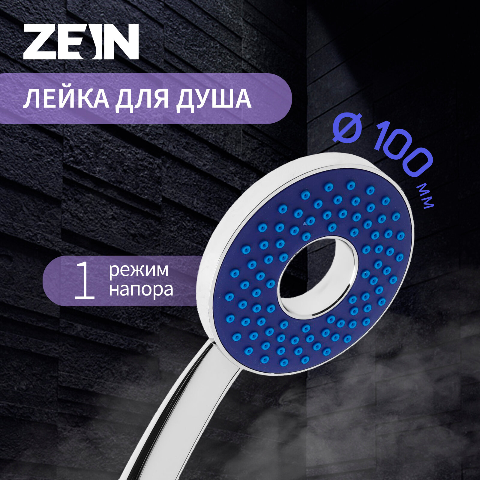 Душевая лейка ZEIN Z0210, пластик, 1 режим, цвет белый с синей вставкой 7182297