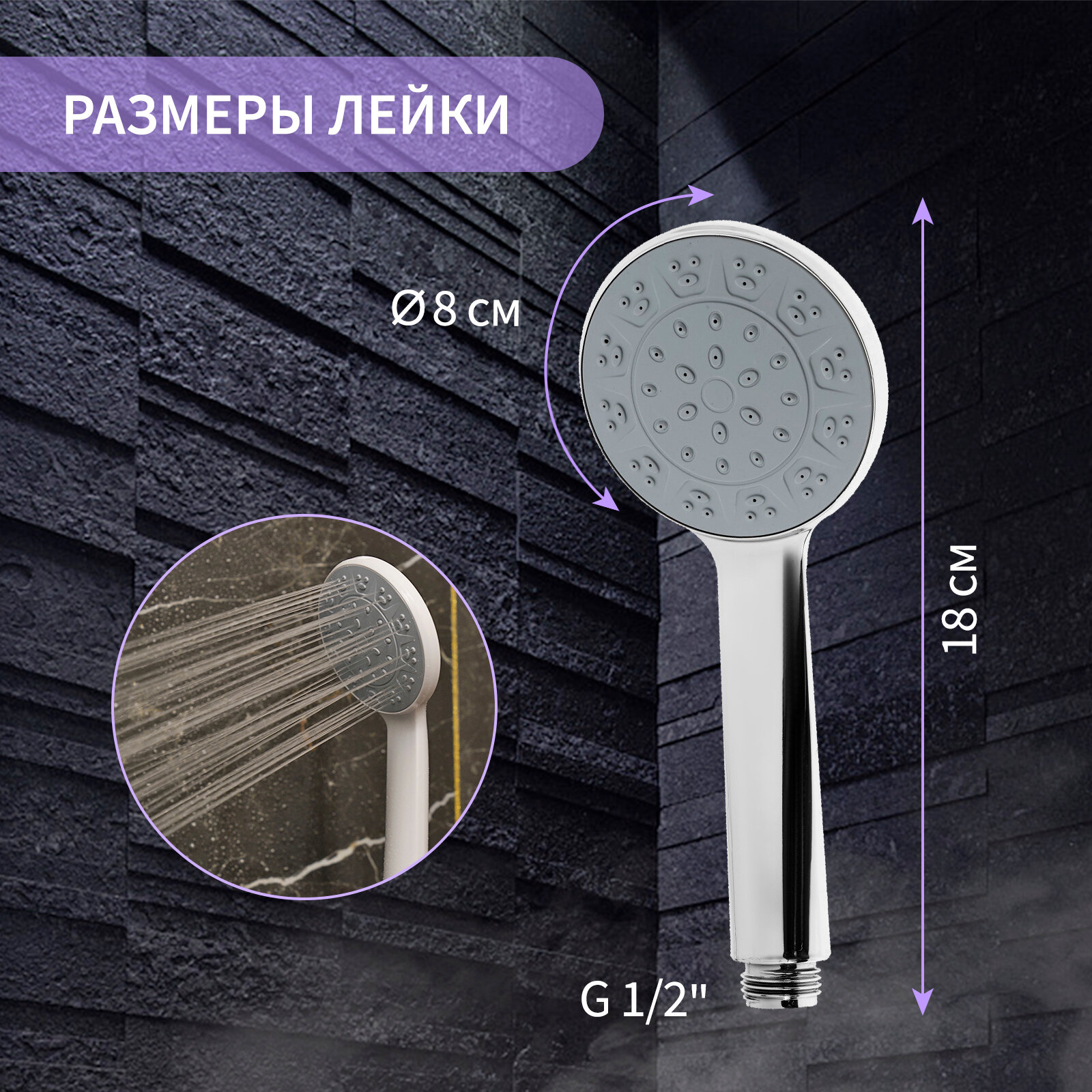 Душевая лейка ZEIN Z0505, пластик, большая, 5 режимов, хром 5482402