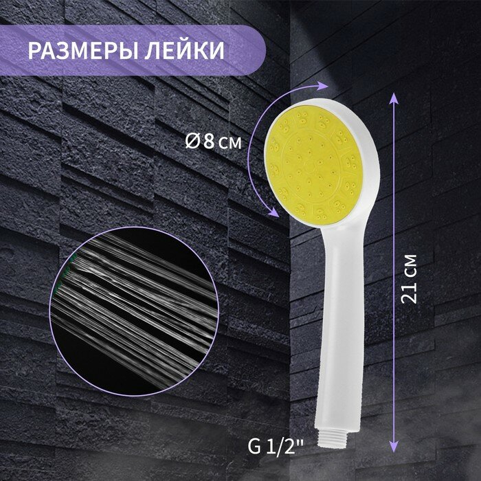 Душевая лейка ZEIN Z0206, пластик, 1 режим, цвет белый с желтой вставкой 7182293