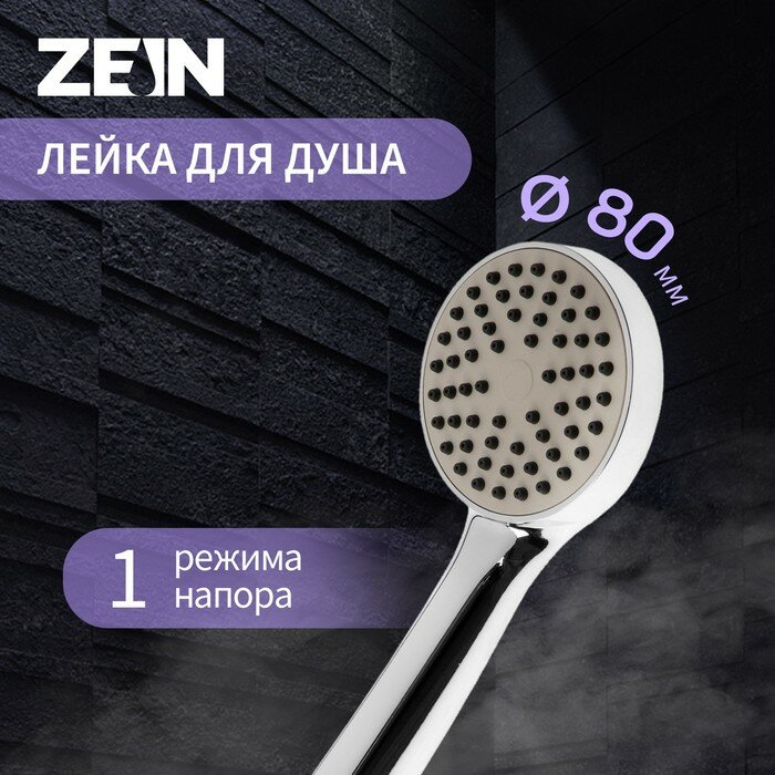 Купить Лейка для душа ZEIN Z0109, 1 режим, средняя, d=80 мм, пластик, цвет хром