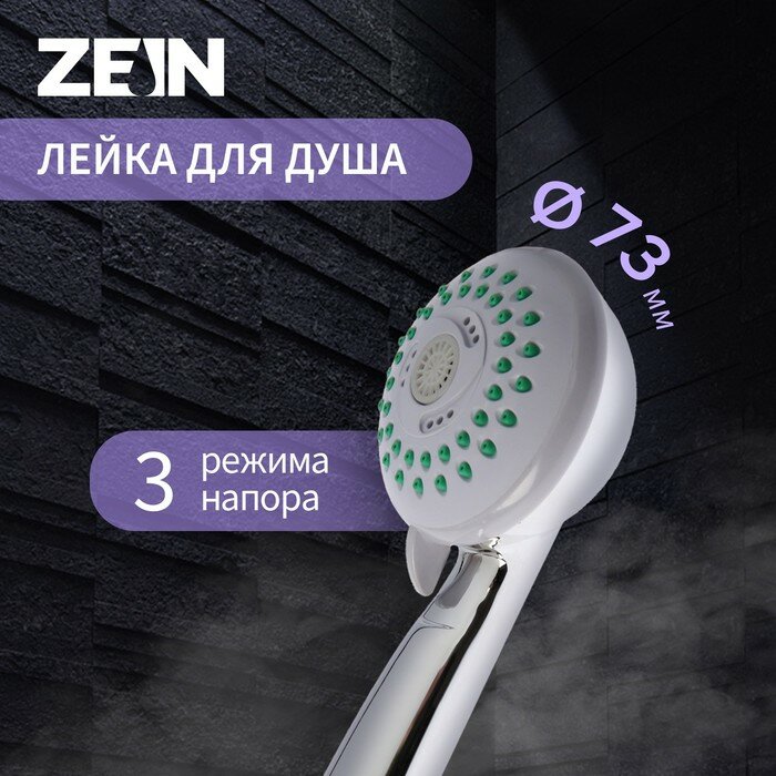 Купить Лейка для душа ZEIN Z0304, 3 режима, d=73 мм, пластик, цвет хром