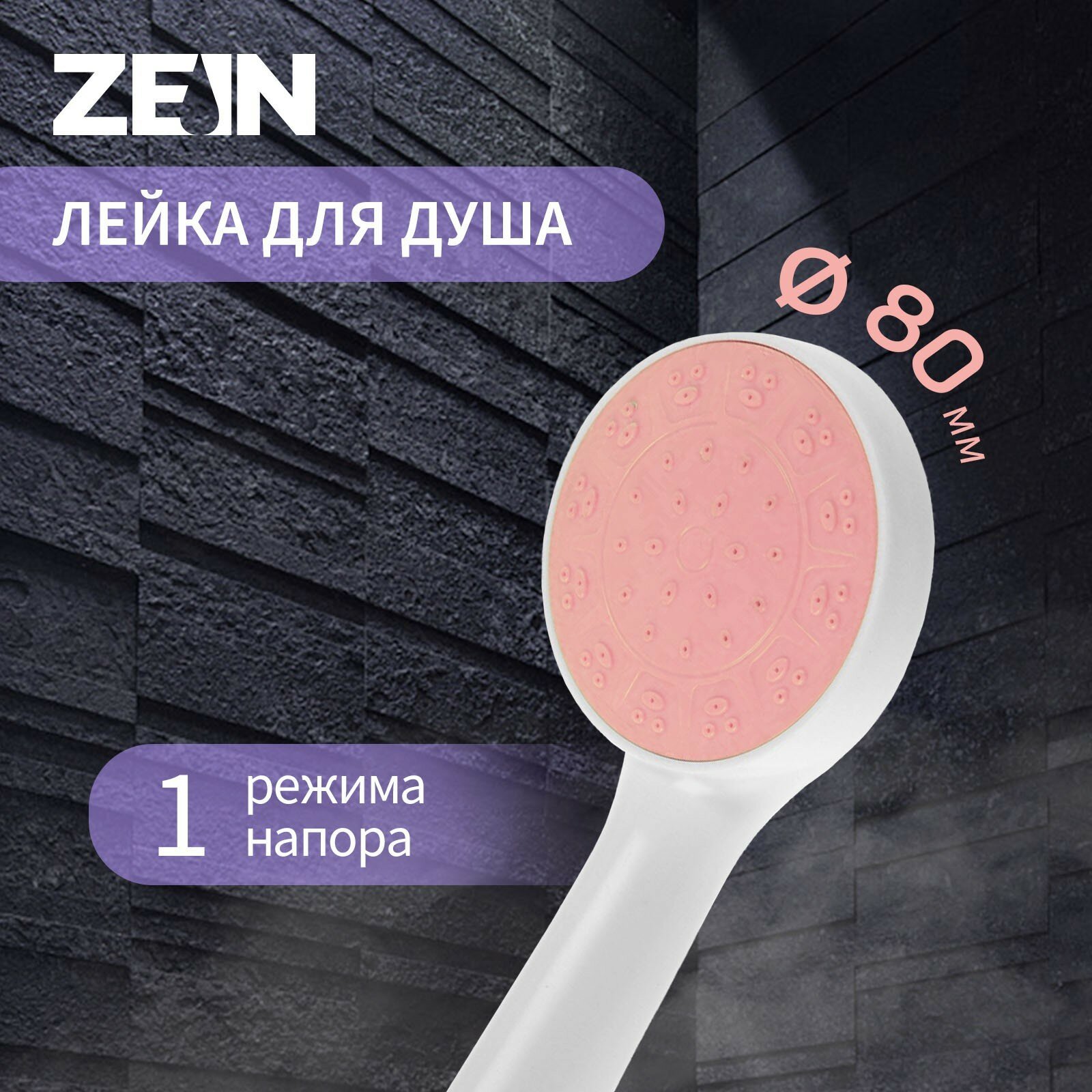 ZEIN Лейка для душа ZEIN Z0209, 1 режим, пластик, белая, с, розовая, вставка