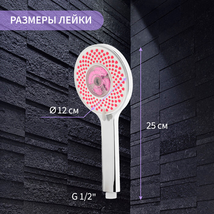 Купить Лейка для душа ZEIN Z3546, d=120 мм, 3 режима, вентилятор, розовые форсунки "сердечки", хром