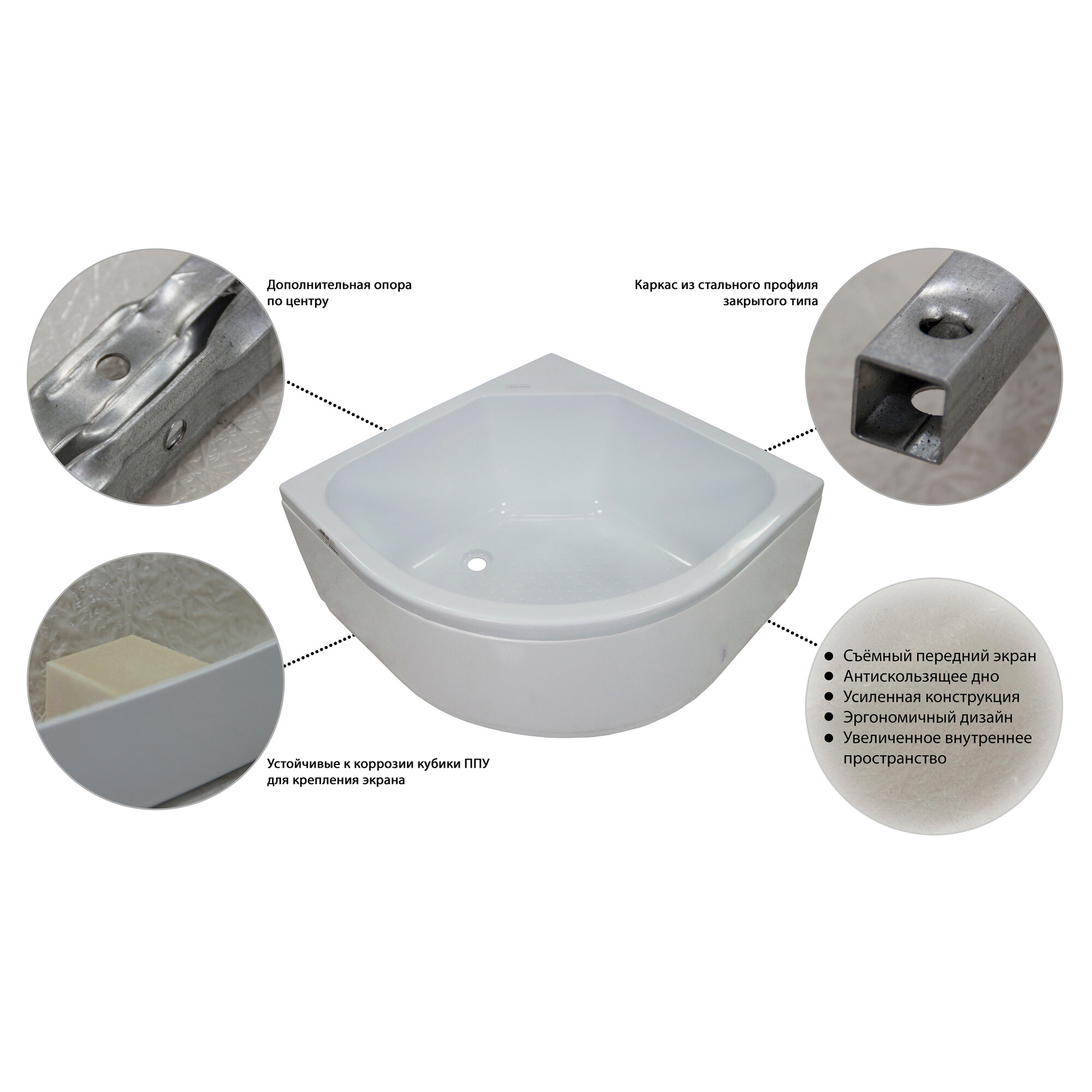 Душевой поддон Тритон ПД 5 глубокий полукруг, обрезанный (без сиденья) 900х900х450 мм белый (Щ0000014179)