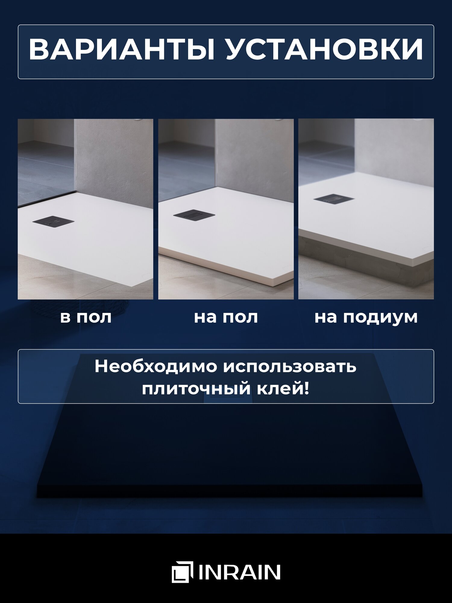 СохранитьПремиальный поддон для душа INRAIN из искусственного камня квадратный 90х90х2,5см Белый с решеткой на сифон интересное:
