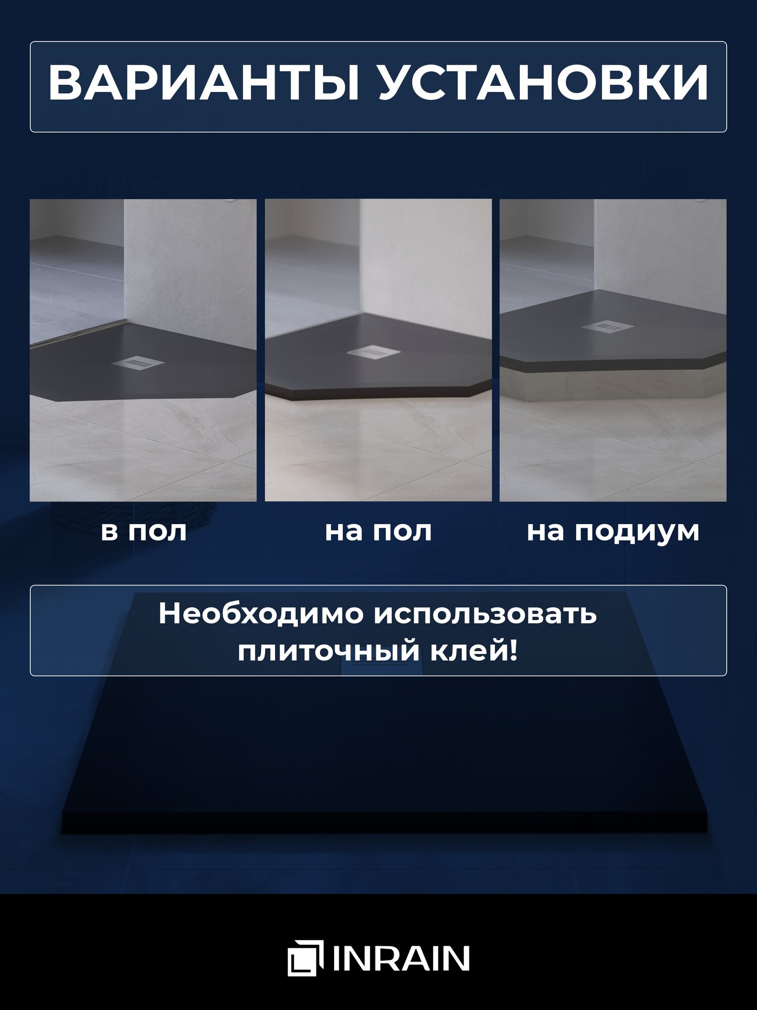 СохранитьПремиальный поддон для душа INRAIN из искусственного камня трапеция Т-80х80x3см Графит с решеткой на сифон интересное: